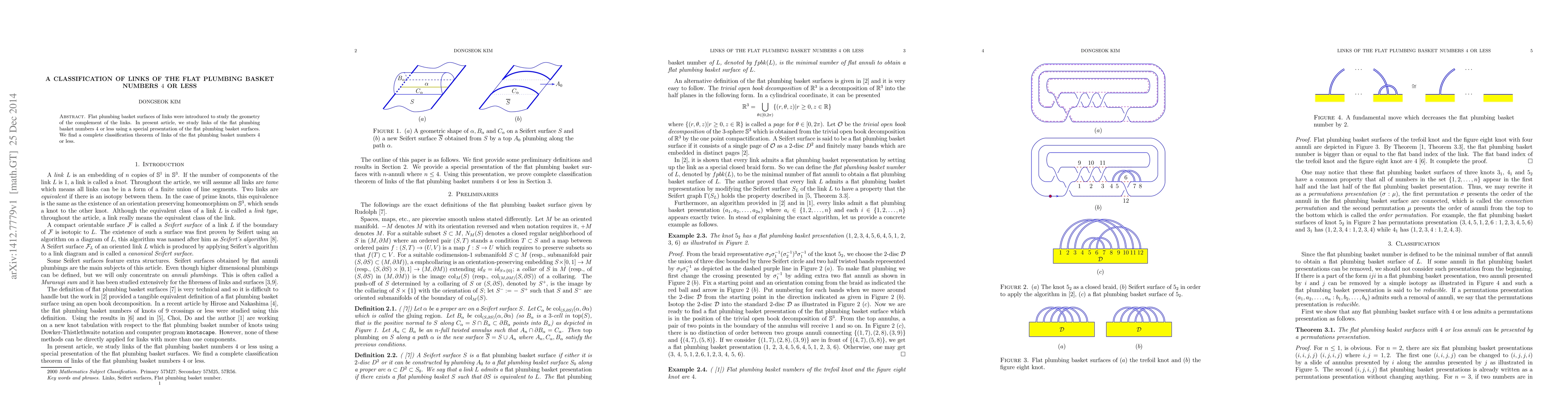 This paper presents a complete classification of links associated with flat plumbing basket numbers up to 4, employing a unique presentation of these surfaces to study the geometry of their complements. The study reveals distinct structural properties of these links.