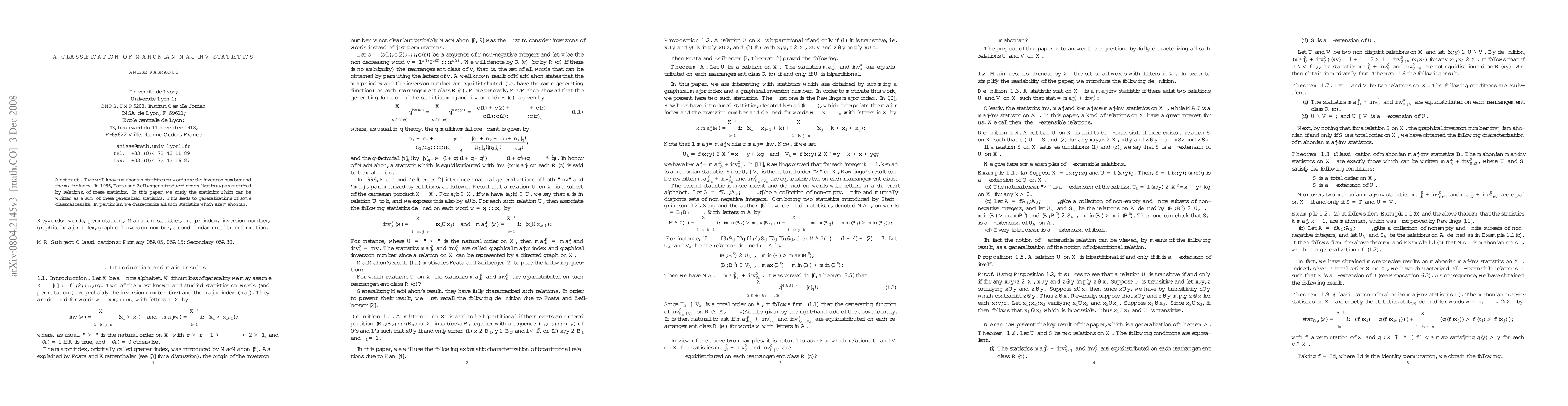 Two well known mahonian statistics on words are the inversion number and the major index. In 1996, Foata and Zeilberger introduced generalizations, parameterized by relations, of these statistics. In this paper, we study the statistics which can be written as a sum of these generalized statistics. This leads to generalizations of some classical results. In particular, we characterize all such statistics which are mahonian.