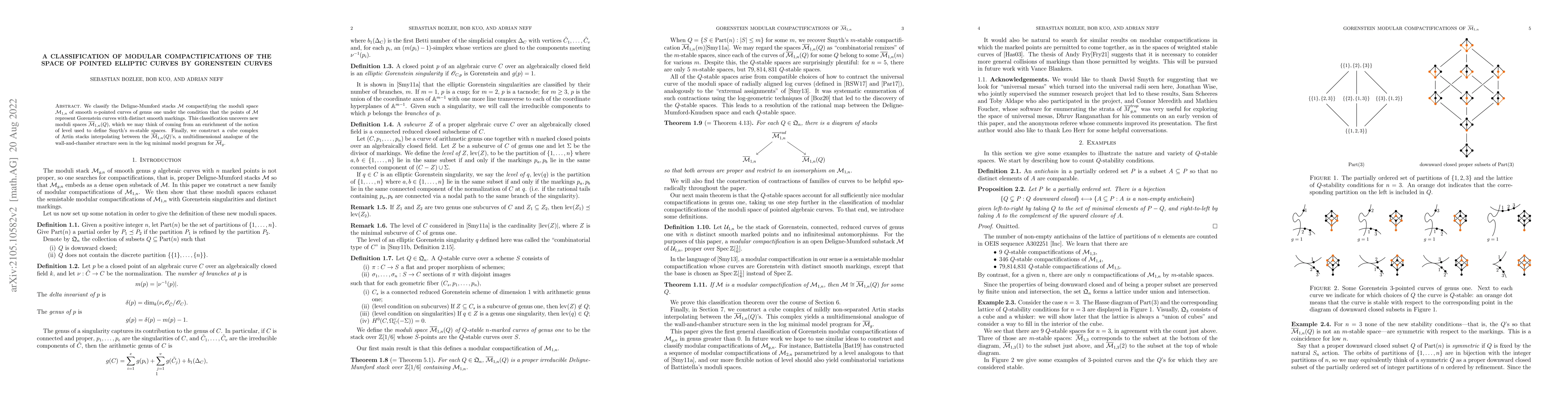 We classify the Deligne-Mumford stacks M compactifying the moduli space of smooth $n$-pointed curves of genus one under the condition that the points of M represent Gorenstein curves with distinct markings. This classification uncovers new moduli spaces $\bar{\mathcal{M}}_{1,n}(Q)$, which we may think of coming from an enrichment of the notion of level used to define Smyth's $m$-stable spaces. Finally, we construct a cube complex of Artin stacks interpolating between the $\bar{\mathcal{M}}_{1,n}(Q)$'s, a multidimensional analogue of the wall-and-chamber structure seen in the log minimal model program for $\bar{\mathcal{M}}_g$.