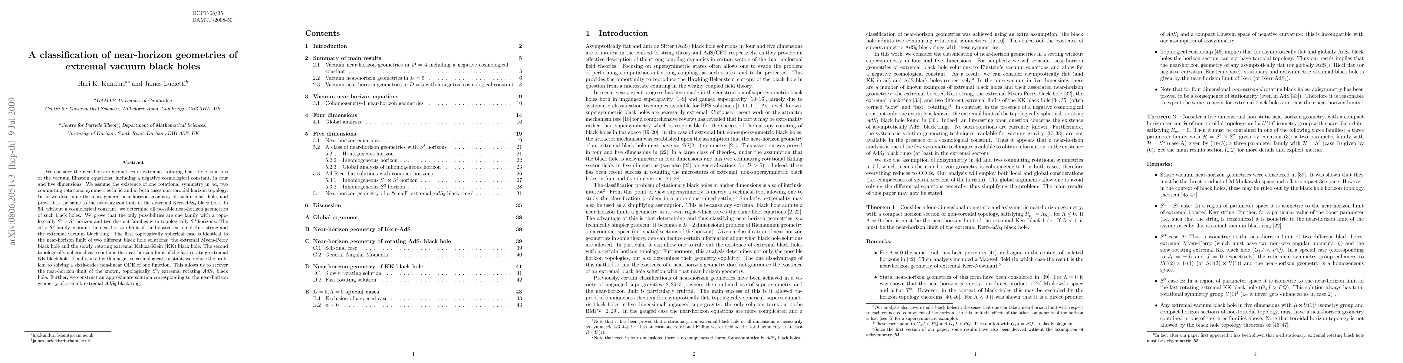 This paper classifies the near-horizon geometries of extremal, rotating black holes in four and five dimensions. In 4d, it identifies the near-horizon geometry as the extremal Kerr-AdS(4) black hole, while in 5d, it determines three distinct geometries, including S^1 X S^2 and S^3 horizons, associated with various black hole solutions and configurations.