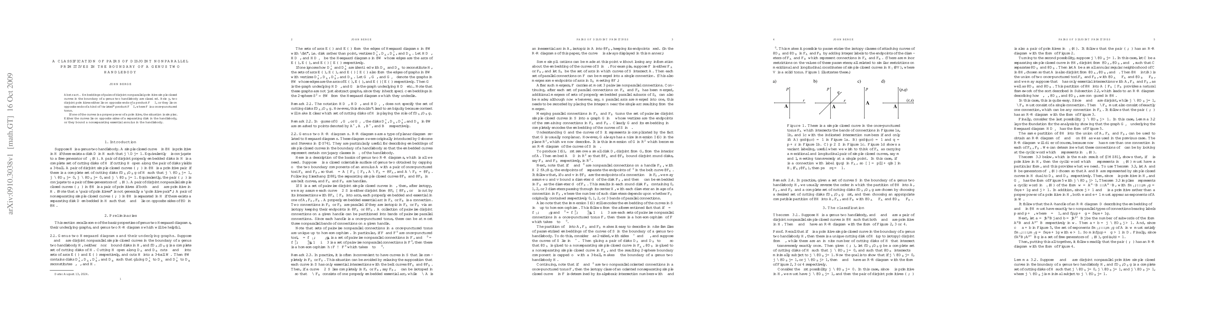 This research classifies embeddings of pairs of disjoint nonparallel primitive simple closed curves in a genus two handlebody's boundary. The pairs either reside on opposite ends of a product or a 'twisted' product of a once-punctured torus, or one curve is a power of a primitive, lying on opposite sides of a separating disk or bounding a nonseparating essential annulus.