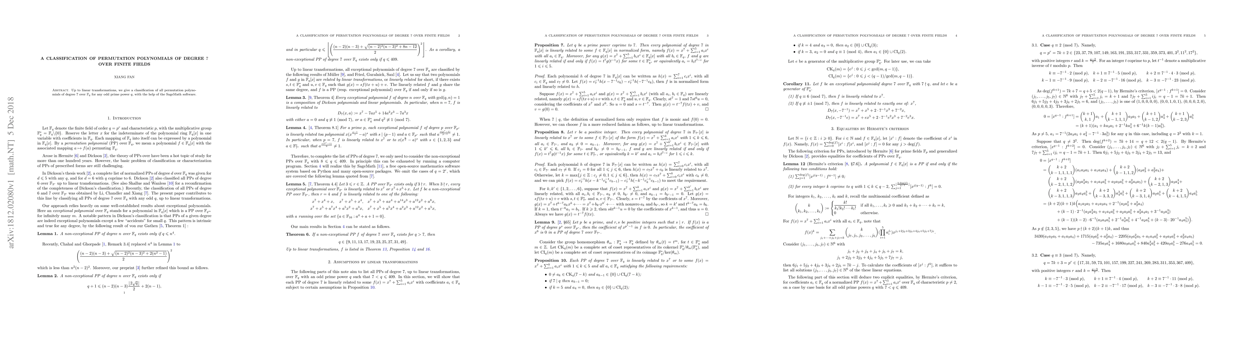 Up to linear transformations, we give a classification of all permutation polynomials of degree $7$ over $\mathbb{F}_{q}$ for any odd prime power $q$, with the help of the SageMath software.
