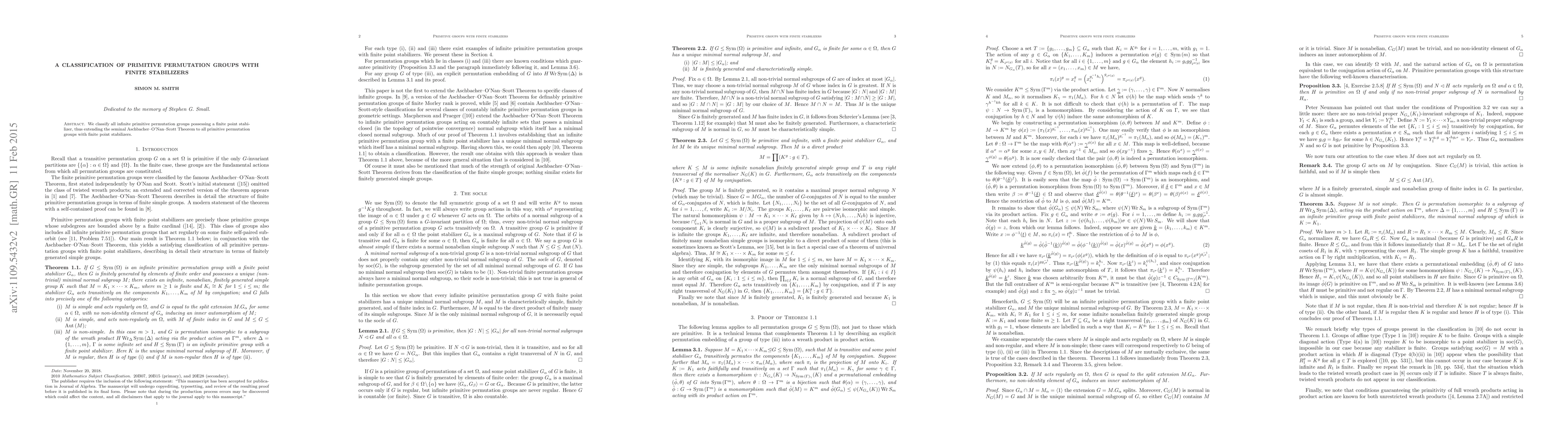The paper classifies all infinite primitive permutation groups with finite point stabilizers, extending the Aschbacher-O'Nan-Scott Theorem to cover this broader class of groups. This work provides a comprehensive understanding of such permutation groups beyond previously established limits.