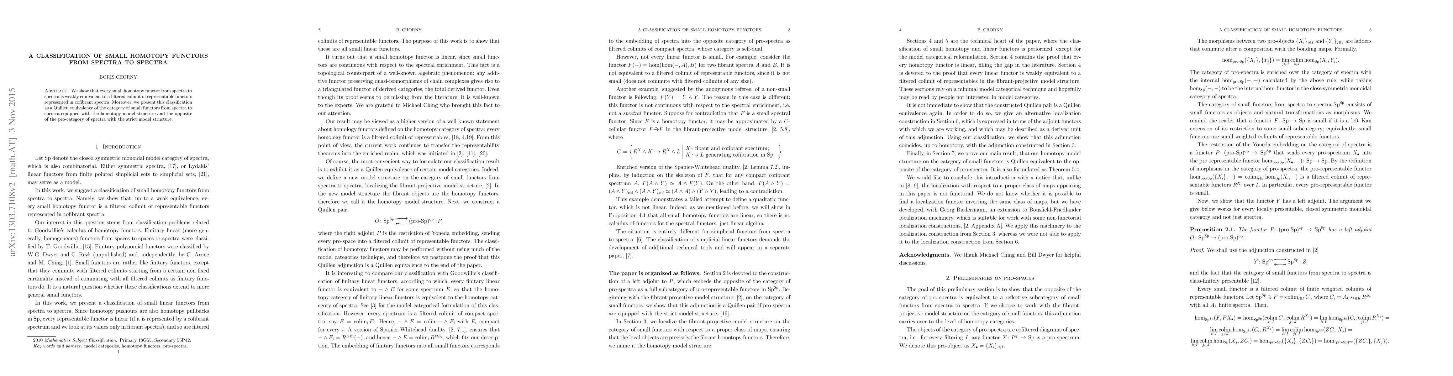 Researchers classify small homotopy functors from spectra to spectra as filtered colimits of representable functors in cofibrant spectra, offering a new understanding of their structure.