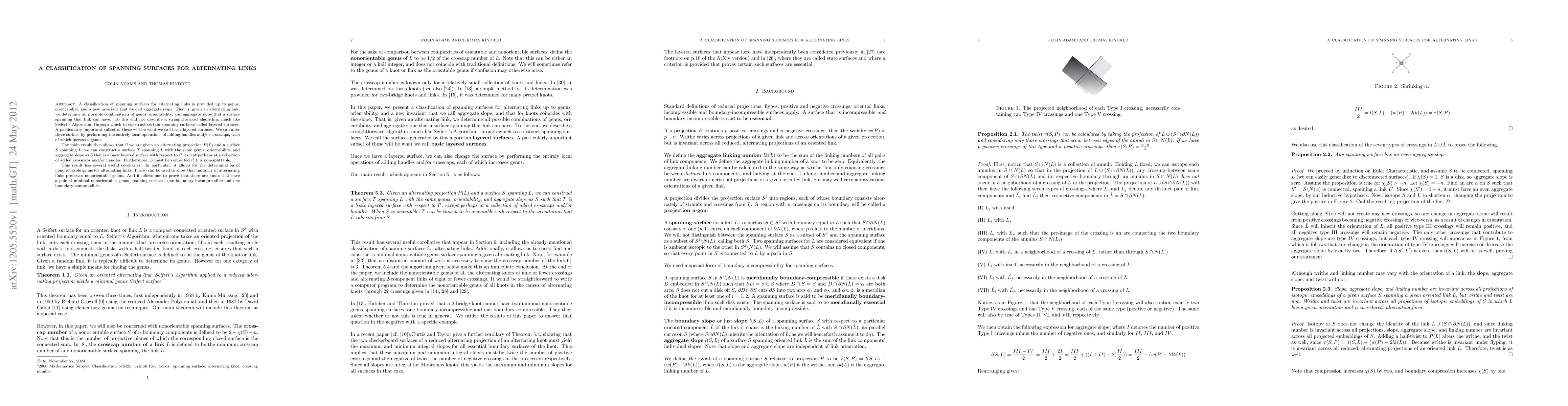 This paper classifies spanning surfaces for alternating links by genus, orientability, and a new invariant called aggregate slope. It introduces an algorithm to construct basic layered surfaces and shows that any spanning surface can be transformed into a basic layered surface, except possibly with added handles or crosscaps.