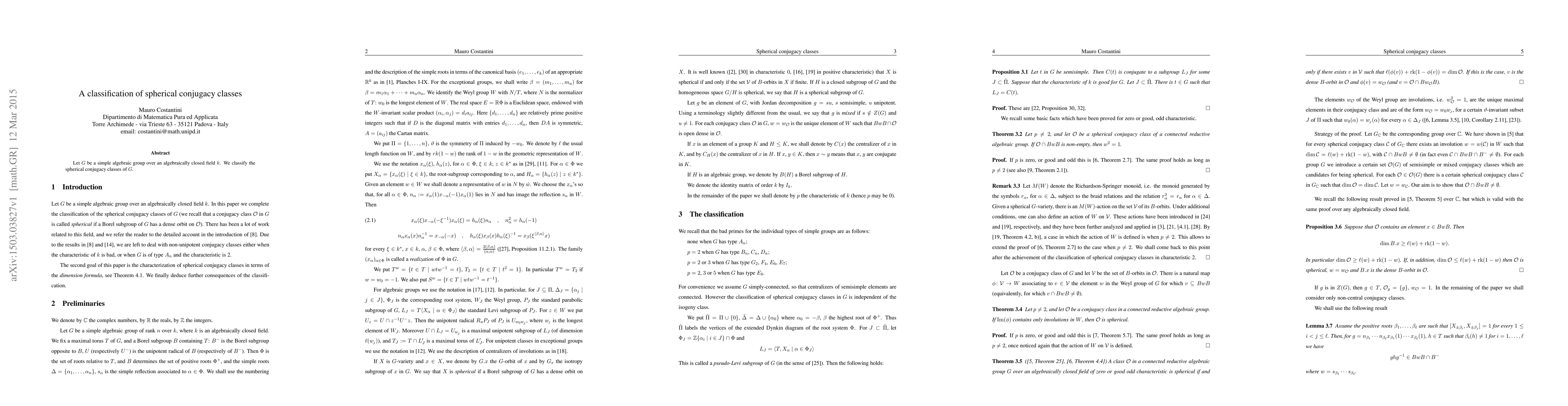 This paper classifies the spherical conjugacy classes of a simple algebraic group G over an algebraically closed field k, providing a comprehensive understanding of the structure of these classes within the group. The results contribute to the broader field of algebraic group theory.