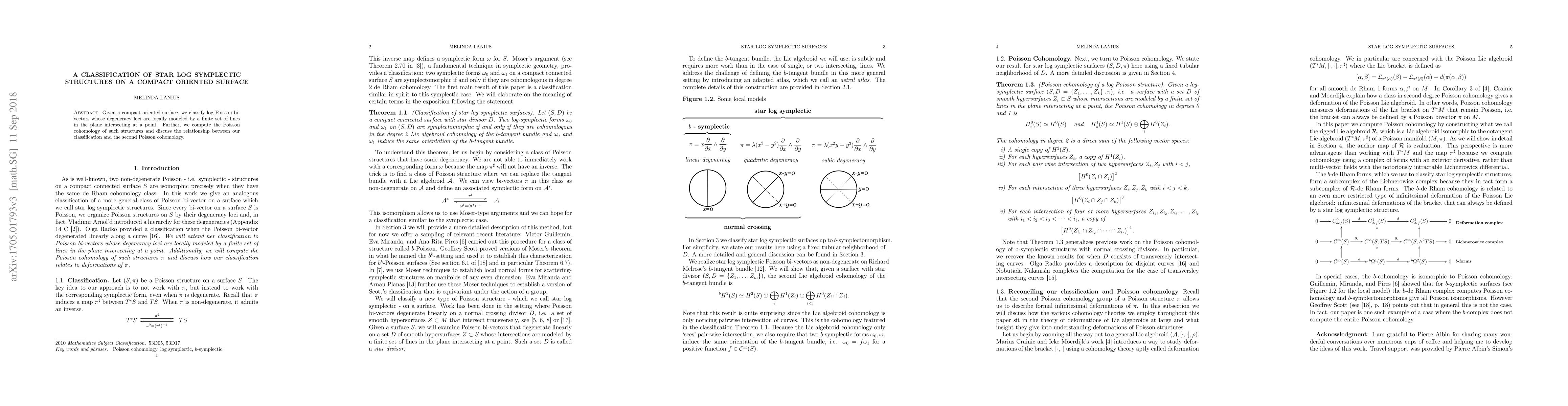 Given a compact oriented surface, we classify log Poisson bi-vectors whose degeneracy loci are locally modeled by a finite set of lines in the plane intersecting at a point. Further, we compute the Poisson cohomology of such structures and discuss the relationship between our classification and the second Poisson cohomology.