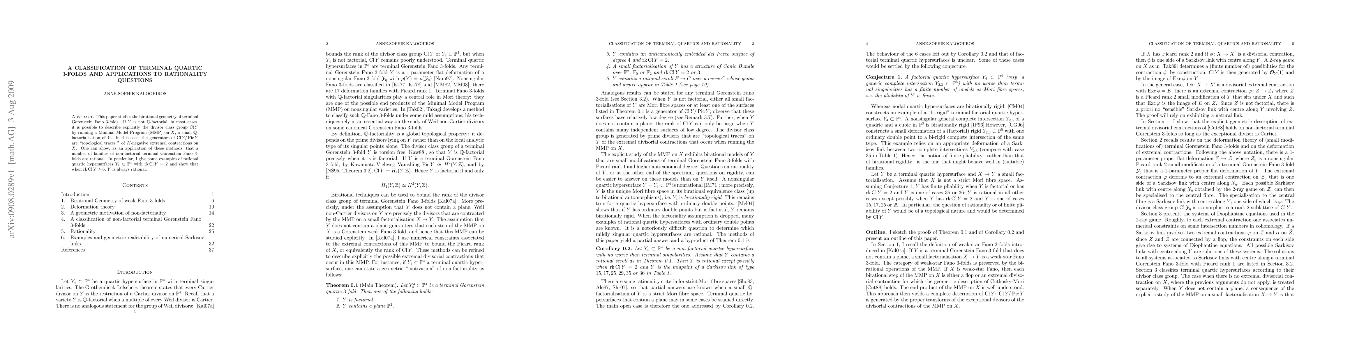 This paper classifies terminal quartic 3-folds and applies Minimal Model Program techniques to determine the rationality of non-factorial terminal Gorenstein Fano 3-folds, showing that many such families are rational.