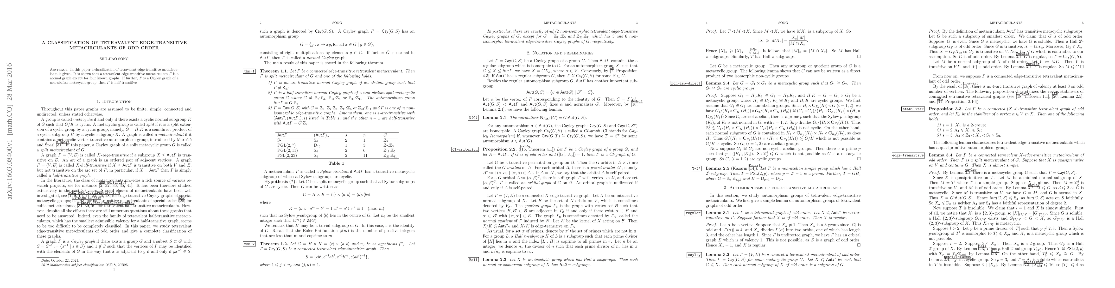 This paper classifies tetravalent edge-transitive metacirculants, finding that all but four are normal graphs. Additionally, if such a metacirculant is a Cayley graph of a non-abelian metacyclic group, it is half-transitive.