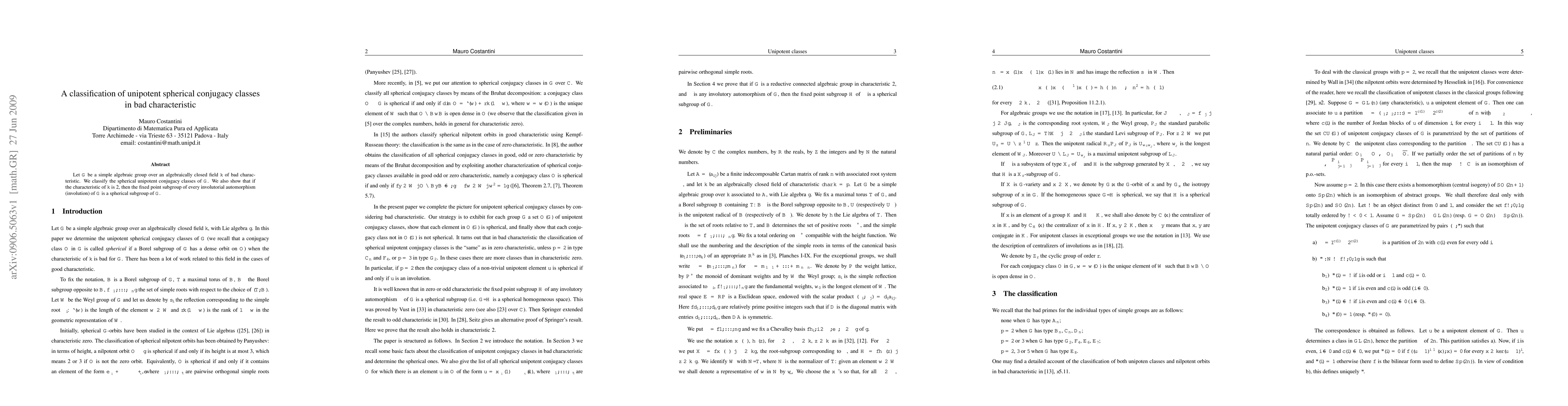 This paper classifies spherical unipotent conjugacy classes in a simple algebraic group G over a field of bad characteristic. Additionally, it demonstrates that in characteristic 2, the fixed point subgroup of any involutorial automorphism of G is a spherical subgroup.
