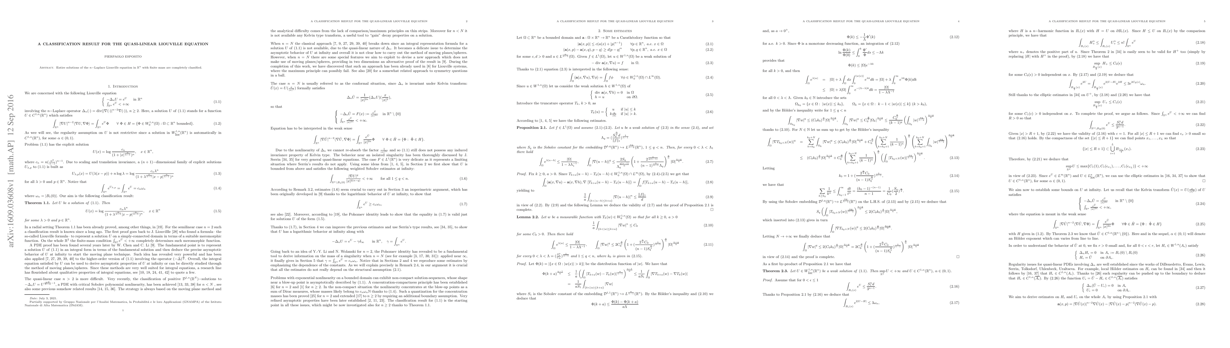 Entire solutions of the $n-$Laplace Liouville equation in $\mathbb{R}^n$ with finite mass are completely classified.