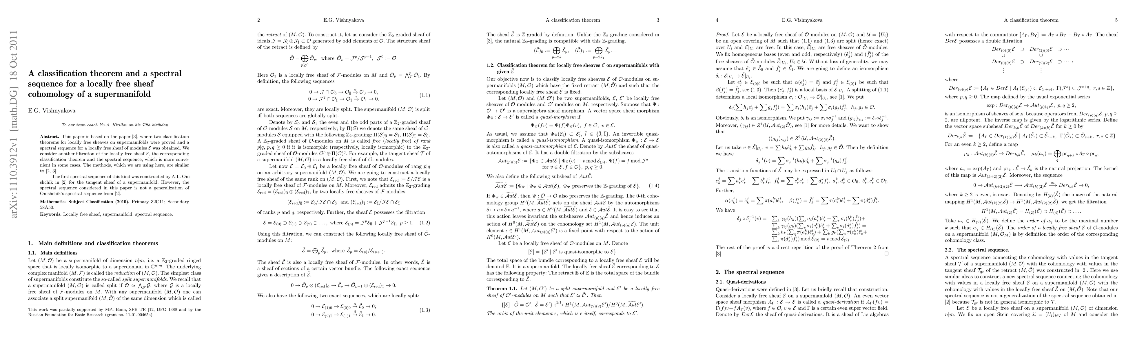 This paper extends classification theorems and spectral sequences for locally free sheaves on supermanifolds, proposing a more convenient alternative filtration and associated spectral sequence. The methods align with those used in the foundational work by Onishchik and Vishnyakova, though this new sequence is not a generalization of Onishchik's original.