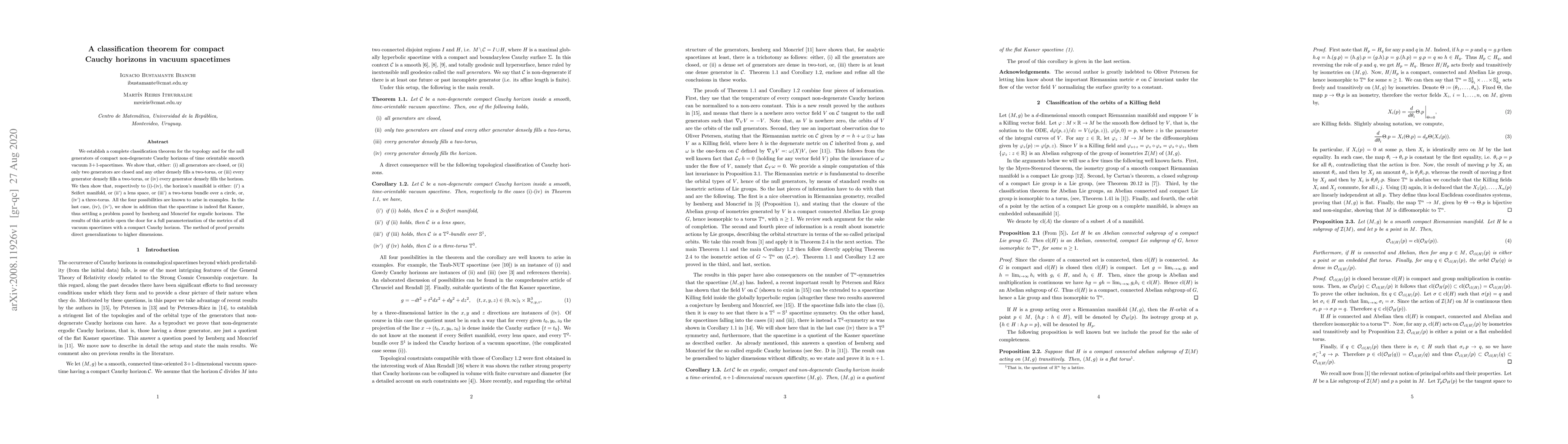 This paper classifies the topology and null generators of compact Cauchy horizons in vacuum spacetimes, showing four possible configurations and corresponding manifold types. It also proves that flat Kasner spacetimes arise in the most complex case, addressing a long-standing problem and paving the way for metric parameterization of such spacetimes.