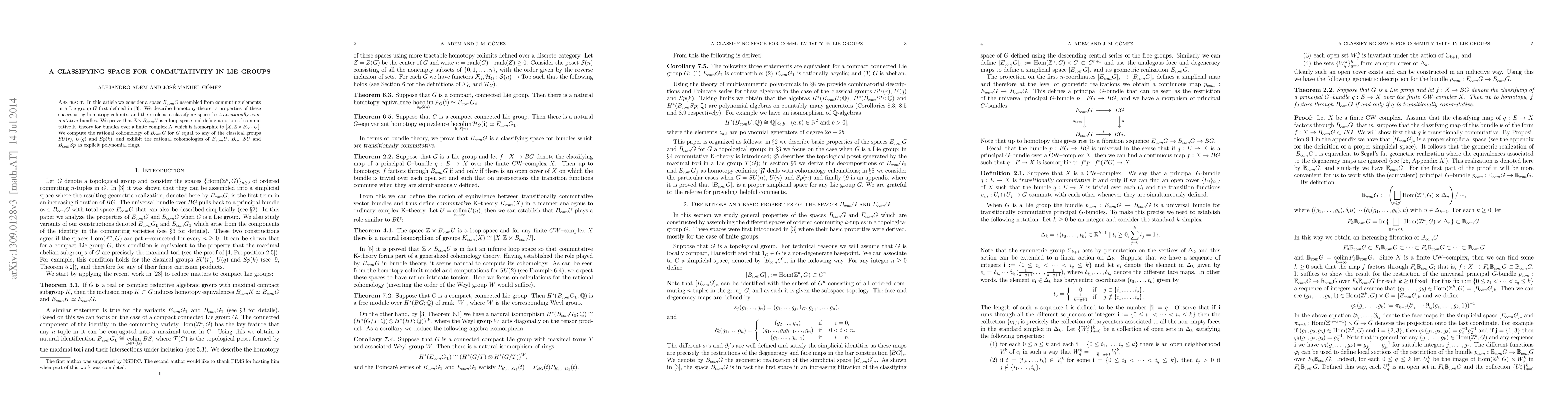This paper defines a classifying space B_{com}G from commuting elements in Lie groups, explores its homotopy properties, and establishes it as a classifying space for commutative bundles. It computes the rational cohomology of B_{com}G for classical groups U(n), SU(n), and Sp(n), revealing them as polynomial rings.
