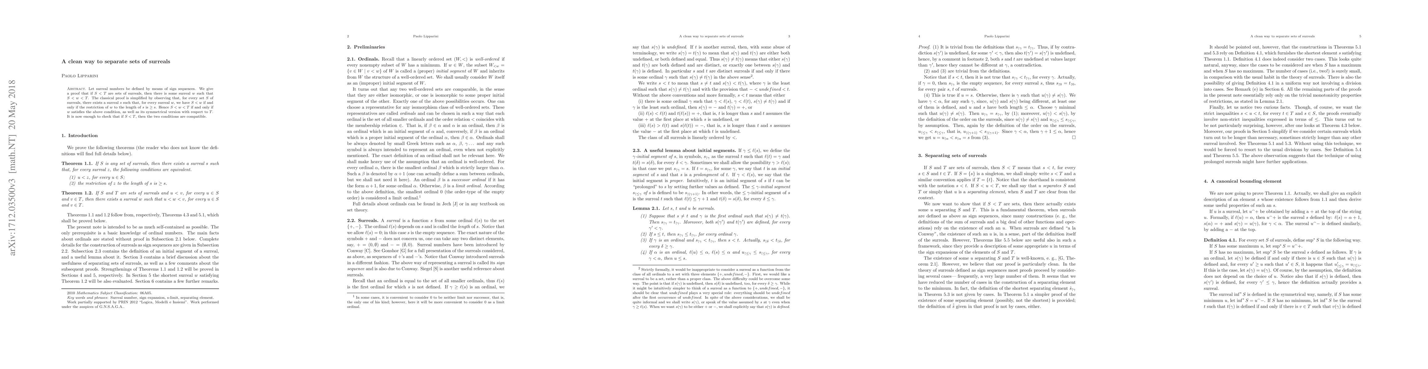 Researchers simplify a proof for separating sets of surreals by finding a common surreal number that lies between two sets, based on their lengths.