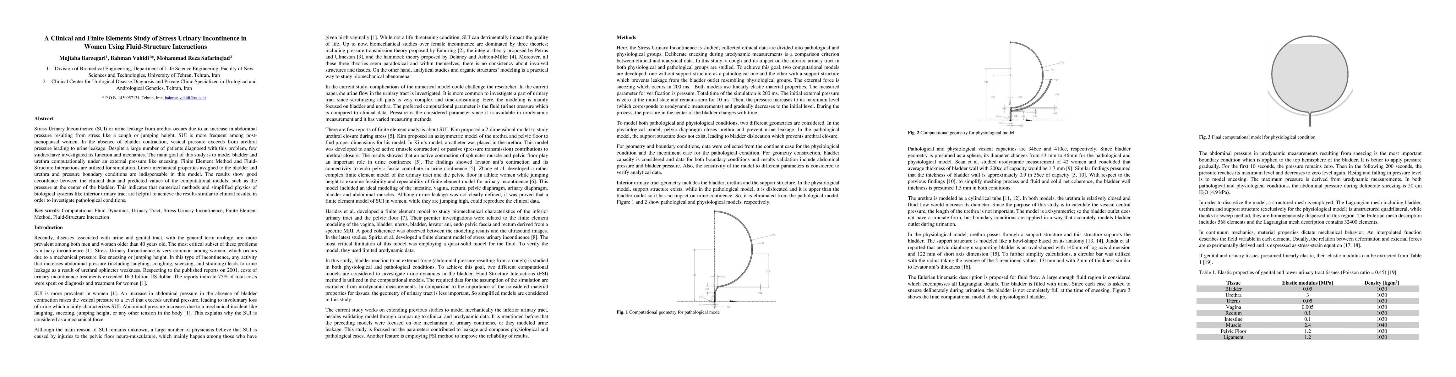 This study models stress urinary incontinence (SUI) using Finite Element Method and Fluid-Structure Interactions, showing good agreement between computational predictions and clinical data. The research aims to understand the mechanics of urine leakage due to increased abdominal pressure, providing insights into the inferior urinary tract's behavior.