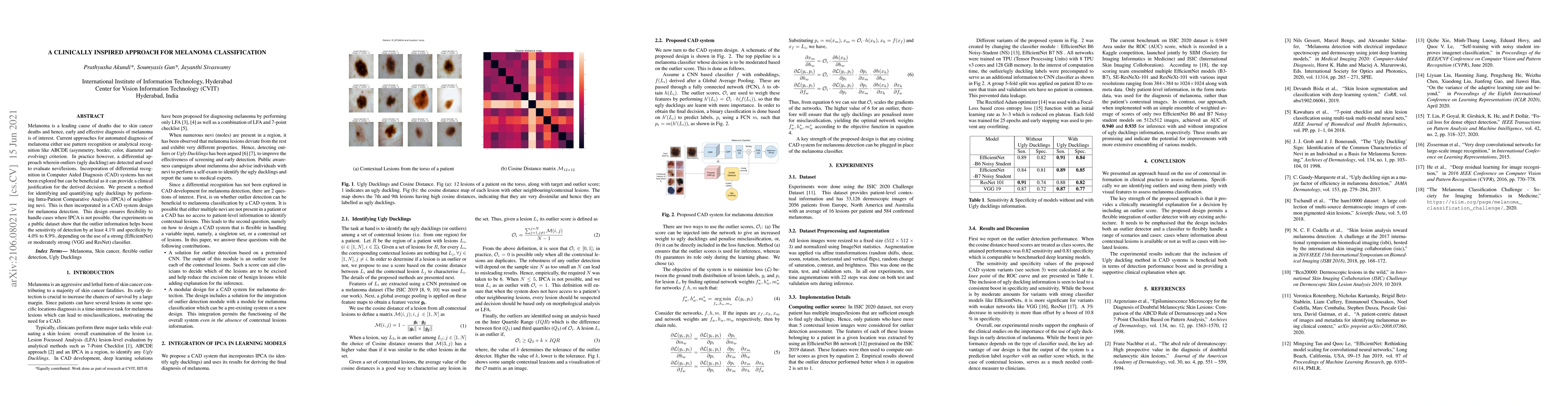 A new approach for melanoma classification uses intra-patient comparative analysis to identify 'ugly duckling' outliers, improving detection sensitivity and specificity by up to 4.1% and 8.9%, respectively.