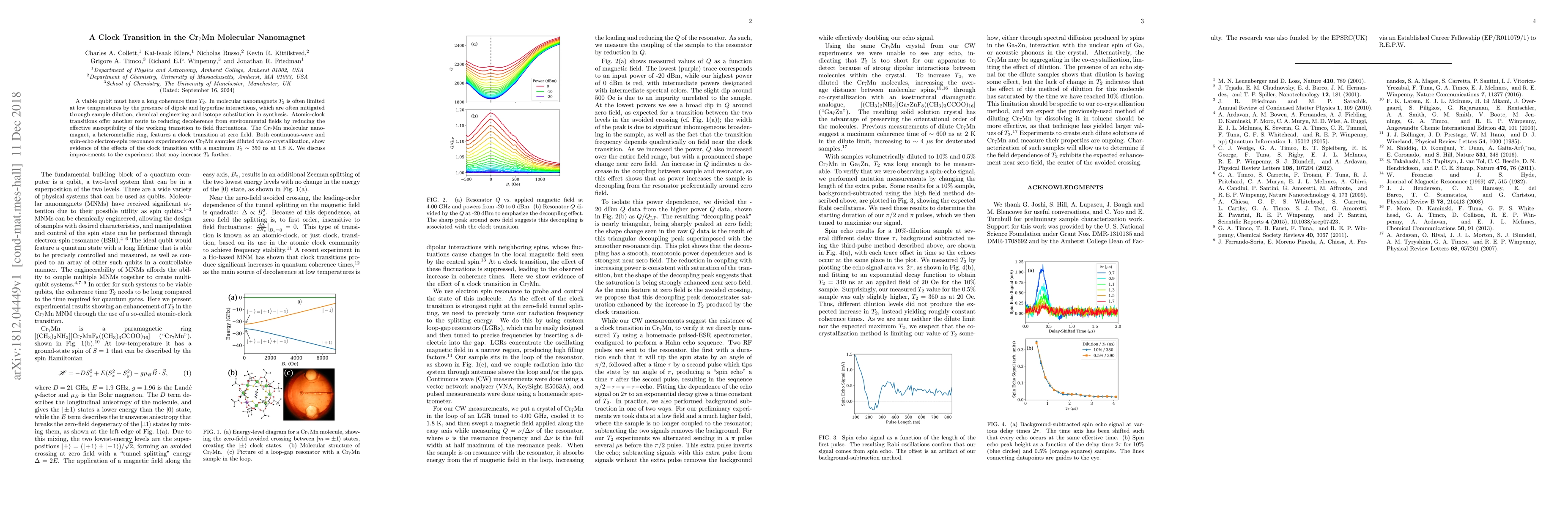This paper explores the Cr$_7$Mn molecular nanomagnet's clock transition to enhance qubit coherence time $T_2$, demonstrating a maximum $T_2$ of 350 ns at 1.8 K via electron-spin resonance experiments. The study suggests that clock transitions can mitigate decoherence, offering a promising route for improving coherence in quantum systems.