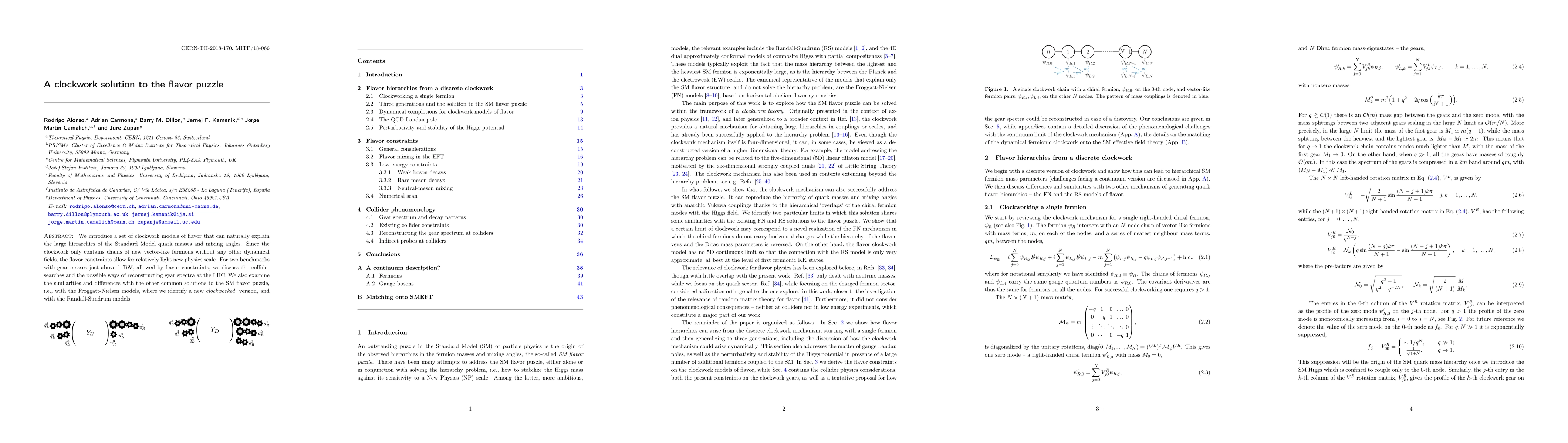 We introduce a set of clockwork models of flavor that can naturally explain the large hierarchies of the Standard Model quark masses and mixing angles. Since the clockwork only contains chains of new vector-like fermions without any other dynamical fields, the flavor constraints allow for relatively light new physics scale. For two benchmarks with gear masses just above 1 TeV, allowed by flavor constraints, we discuss the collider searches and the possible ways of reconstructing gear spectra at the LHC. We also examine the similarities and differences with the other common solutions to the SM flavor puzzle, i.e., with the Froggatt-Nielsen models, where we identify a new {\it clockworked } version, and with the Randall-Sundrum models.