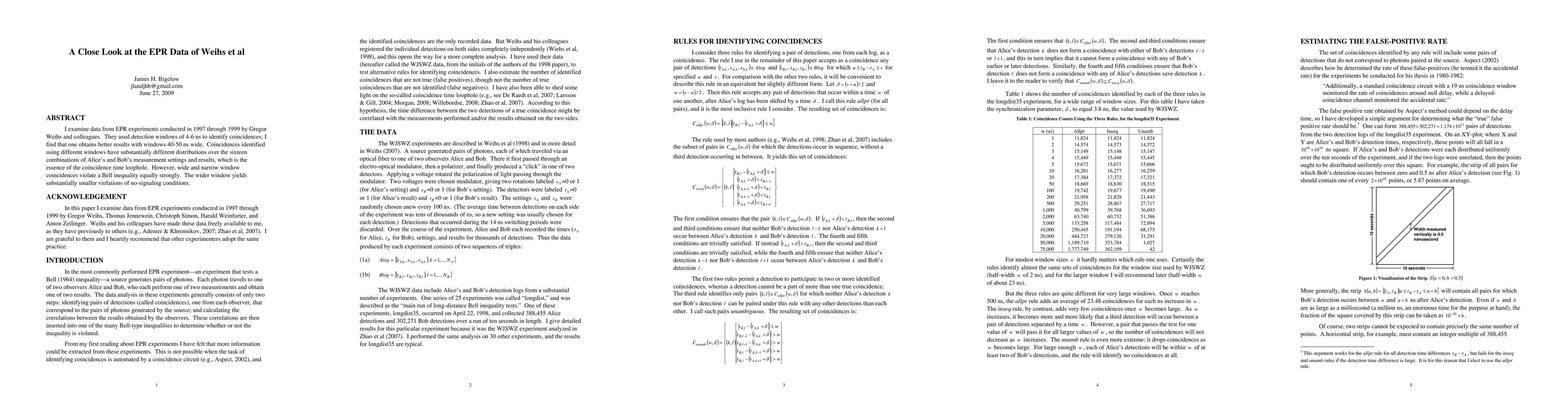 I examine data from EPR experiments conducted in 1997 through 1999 by Gregor Weihs and colleagues. They used detection windows of 4-6 ns to identify coincidences; I find that one obtains better results with windows 40-50 ns wide. Coincidences identified using different windows have substantially different distributions over the sixteen combinations of Alice's and Bob's measurement settings and results, which is the essence of the coincidence time loophole. However, wide and narrow window coincidences violate a Bell inequality equally strongly. The wider window yields substantially smaller violations of no-signaling conditions.