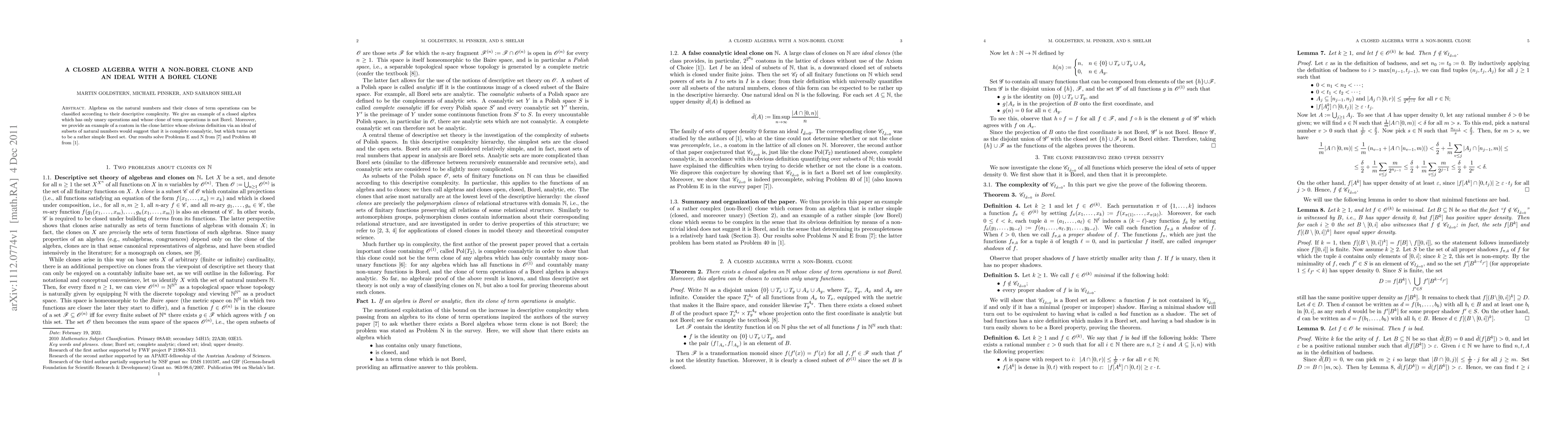 This paper presents a closed algebra on natural numbers with unary operations whose clone of term operations is not Borel. It also demonstrates a coatom in the clone lattice that appears complex but is actually a simple Borel set.