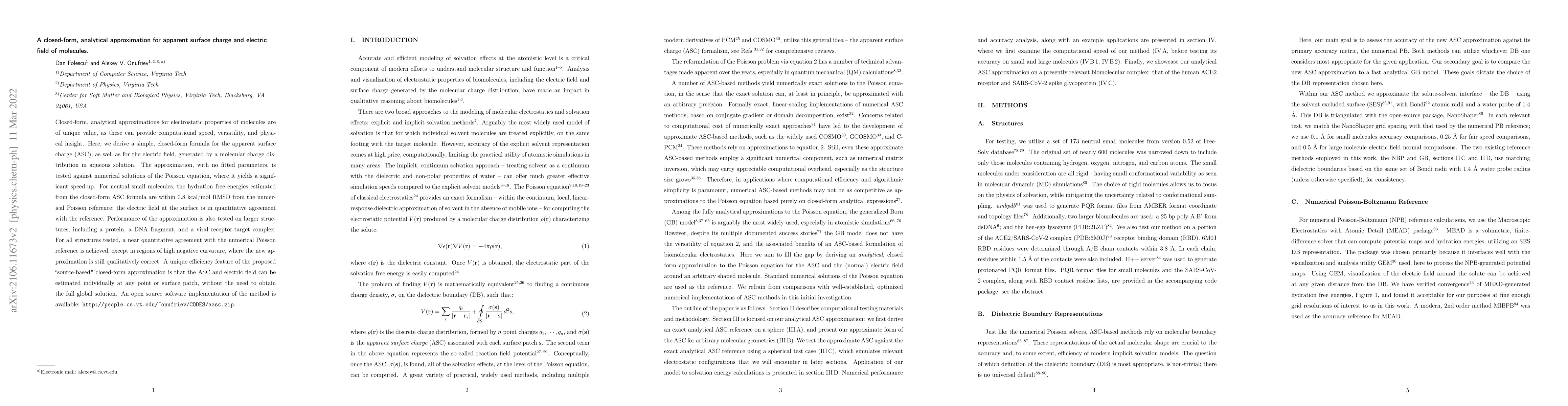 This paper presents a closed-form, analytical approximation for calculating apparent surface charge and the electric field of molecules, offering computational speed and physical insight without fitted parameters. The method shows near quantitative agreement with numerical solutions for various molecular structures and allows for efficient, localized estimation of electrostatic properties.