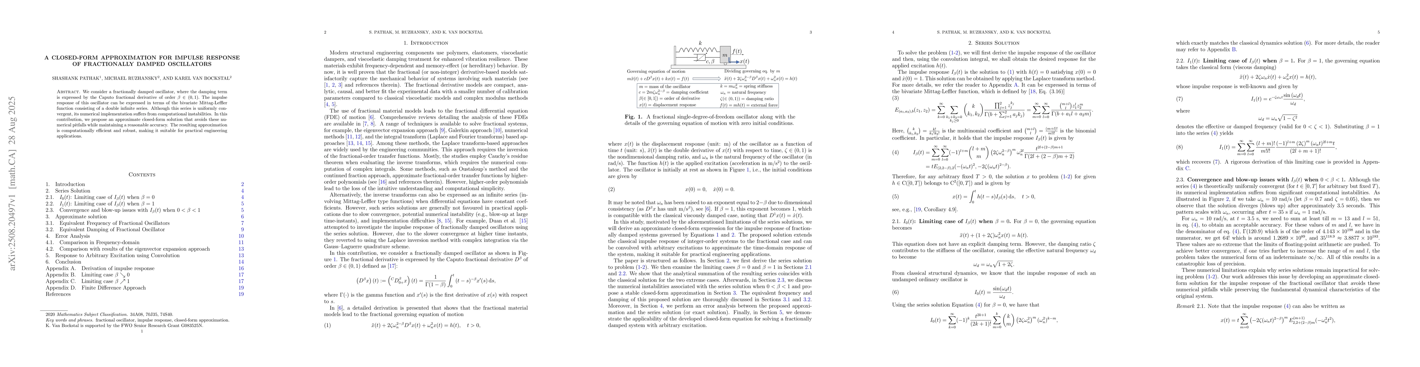 We consider a fractionally damped oscillator, where the damping term is expressed by the Caputo fractional derivative of order $\beta\in (0,1).$ The impulse response of this oscillator can be expressed in terms of the bivariate Mittag-Leffler function consisting of a double infinite series. Although this series is uniformly convergent, its numerical implementation suffers from computational instabilities. In this contribution, we propose an approximate closed-form solution that avoids these numerical pitfalls while maintaining a reasonable accuracy. The resulting approximation is computationally efficient and robust, making it suitable for practical engineering applications.