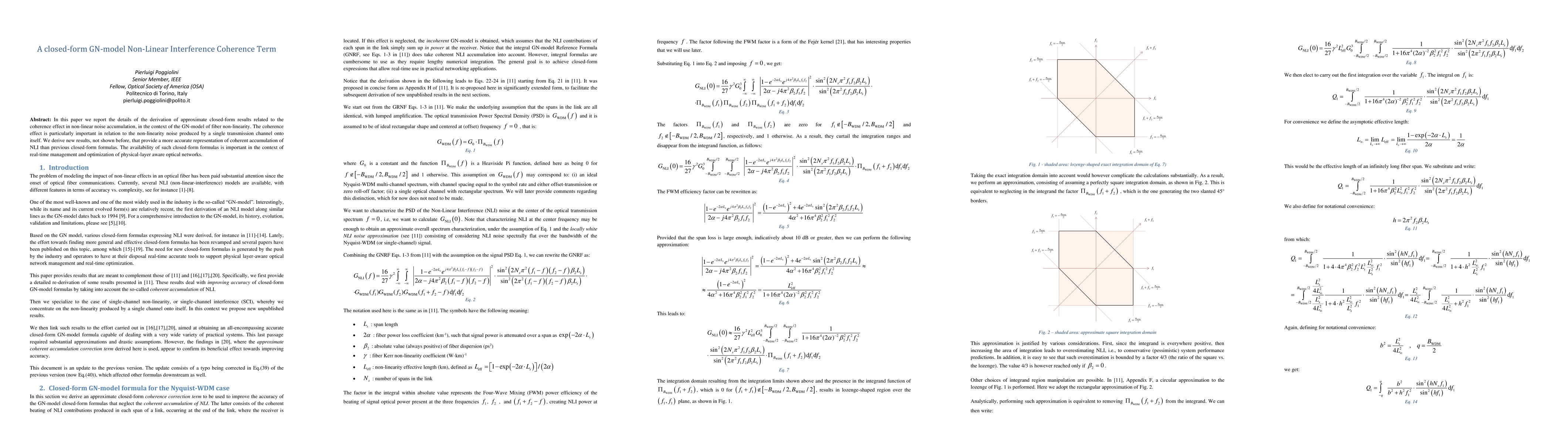 In this paper we report on the details of the derivation of approximate closed-form results related to the coherence effect in non-linear noise accumulation, in the context of the GN-model of fiber non-linearity. The coherence effect is particularly important in relation to the non-linearity noise produced by a single transmission channel onto itself. We derive new results, not shown before, that provide a more accurate representation of coherent accumulation of NLI than previous closed-form formulas. The availability of such closed-form formulas is important in the context of real-time management and optimization of physical-layer aware optical networks.