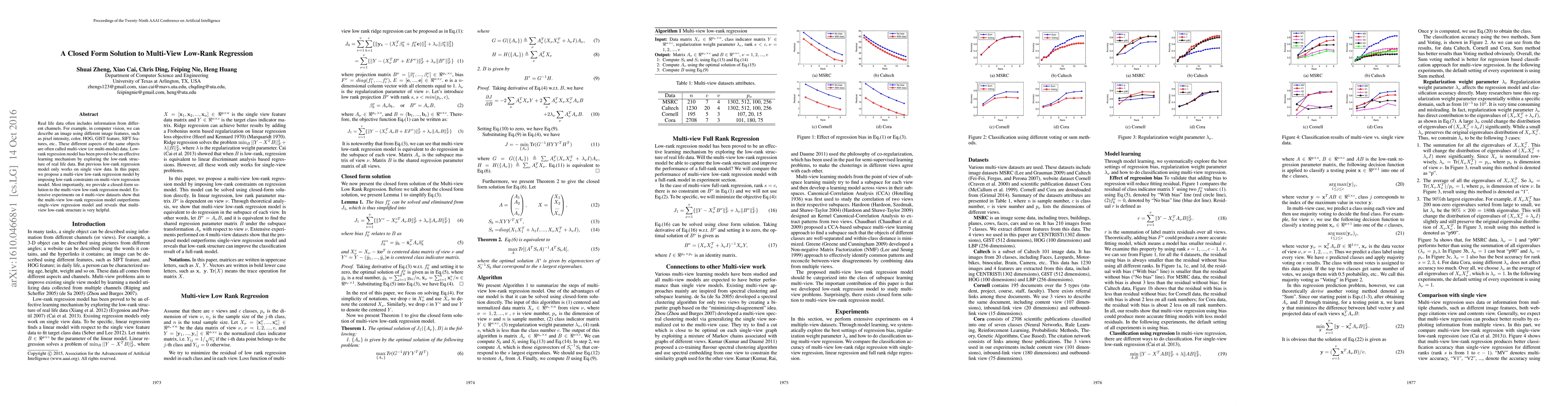This paper proposes a multi-view low-rank regression model that imposes low-rank constraints on different data views, providing a closed-form solution. Experiments demonstrate its superior performance over single-view models, highlighting the benefits of multi-view low-rank structures.