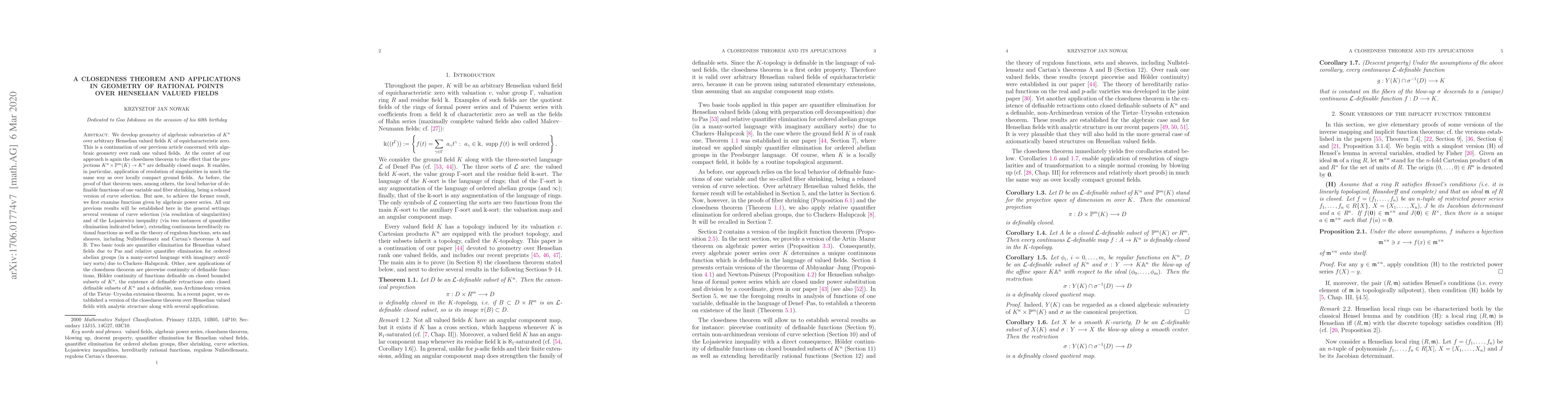 This paper develops the geometry of algebraic subvarieties over Henselian valued fields, extending previous work focused on rank one valued fields. The central closedness theorem shows that projections are definably closed, enabling applications of resolution of singularities. The authors apply quantifier elimination techniques to establish results including curve selection, the \L{}ojasiewicz inequality, and theory of regulous functions.