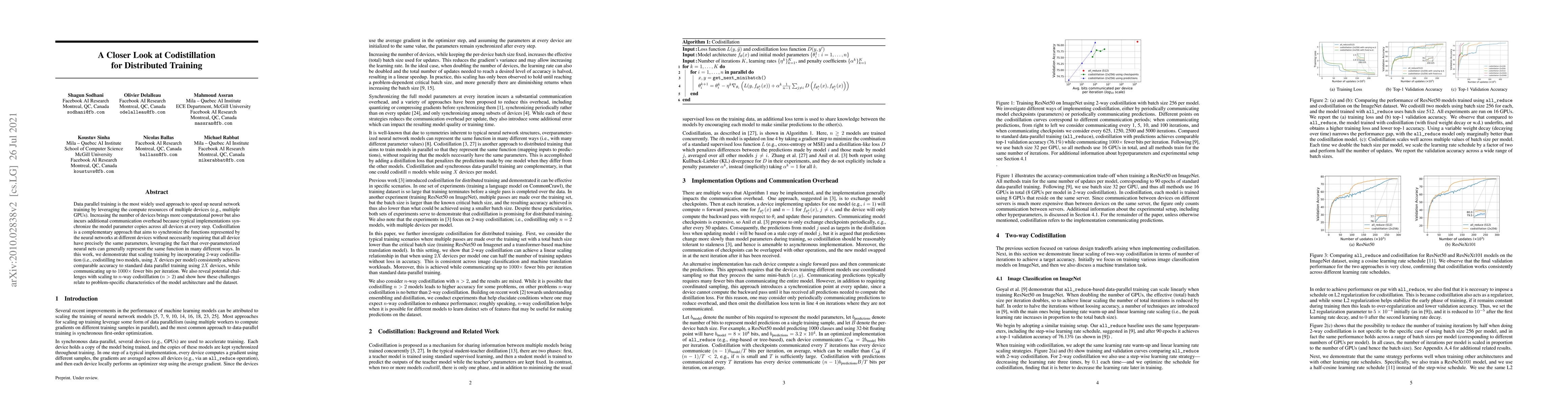 Researchers found that codistillation can perform as well as synchronous data-parallel methods in distributed training setups even at moderate batch sizes. Properly accounting for the regularization effect of codistillation is crucial to achieving accurate results.
