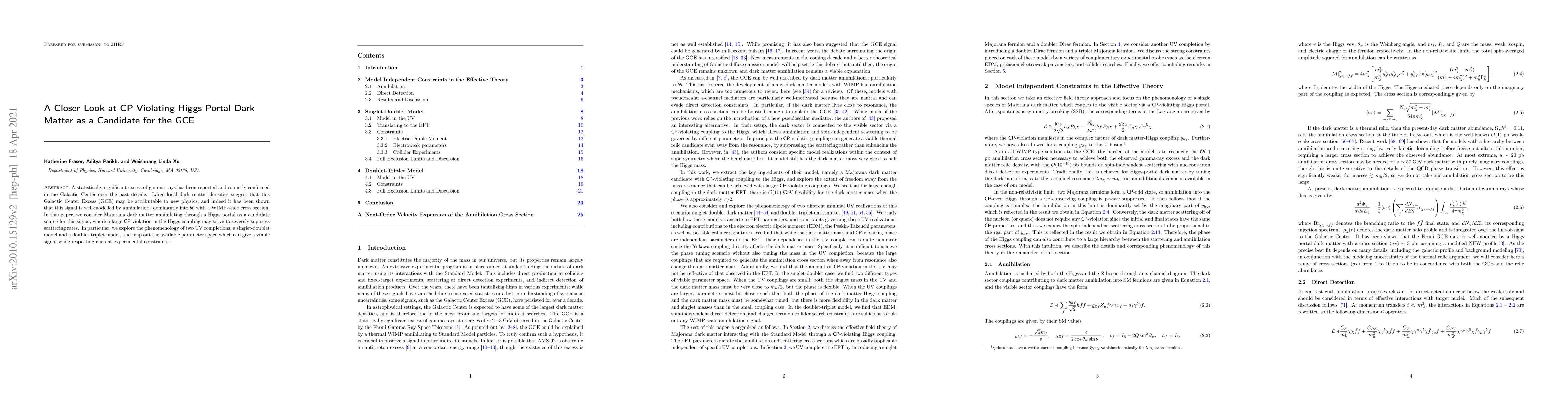 The paper presents a comprehensive study of a CP-violating Higgs portal dark matter model, including detailed analysis of the EFT framework, UV completions, and constraints from various experiments.