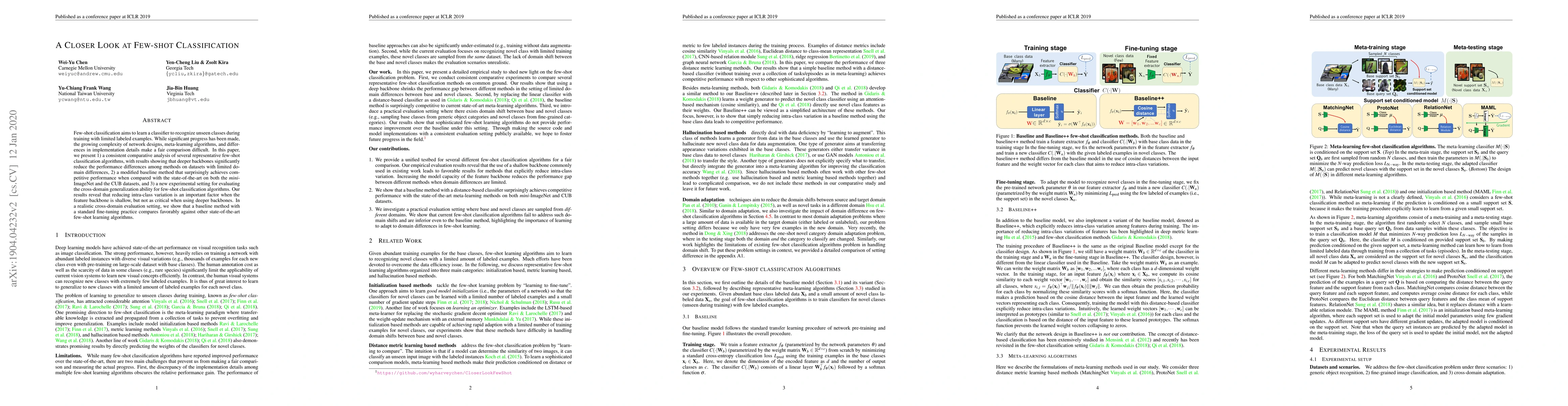 This paper conducts a comparative analysis of few-shot classification algorithms, finding that deeper network backbones reduce performance disparities among methods. It introduces a modified baseline that achieves competitive results against state-of-the-art on \miniI and CUB datasets, emphasizing the importance of reducing intra-class variation in shallow networks.