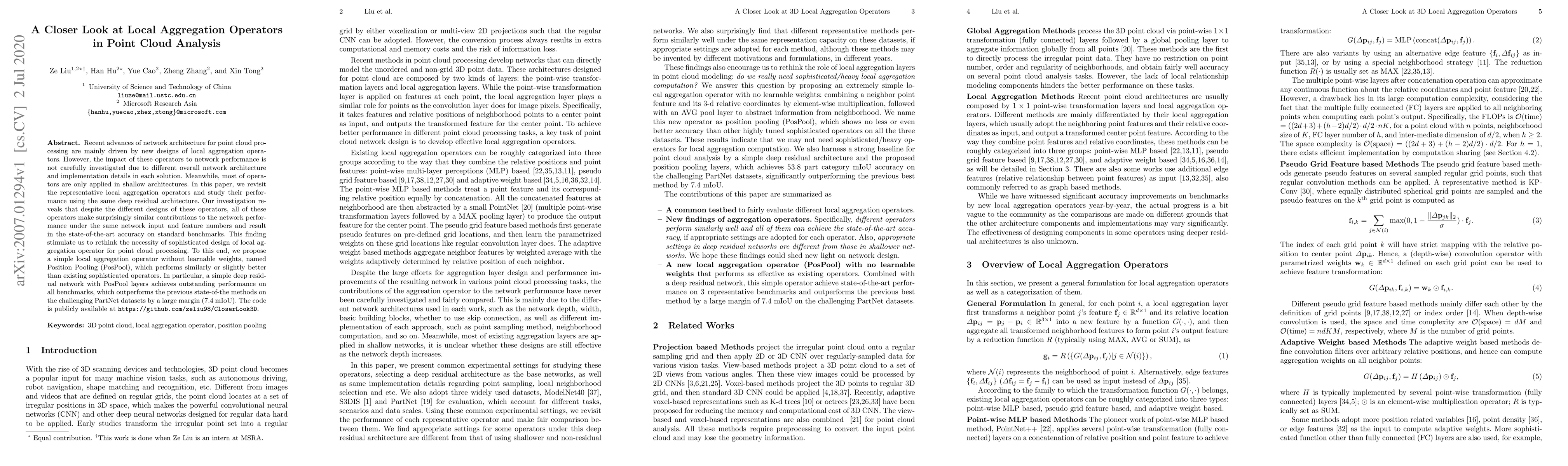 This paper investigates the performance of various local aggregation operators in deep residual networks for point cloud analysis, finding that despite their design differences, they contribute similarly to network performance. The study proposes a simple Position Pooling (PosPool) operator, which achieves comparable or superior results to more complex operators, leading to state-of-the-art accuracy on benchmarks, especially on the PartNet dataset.