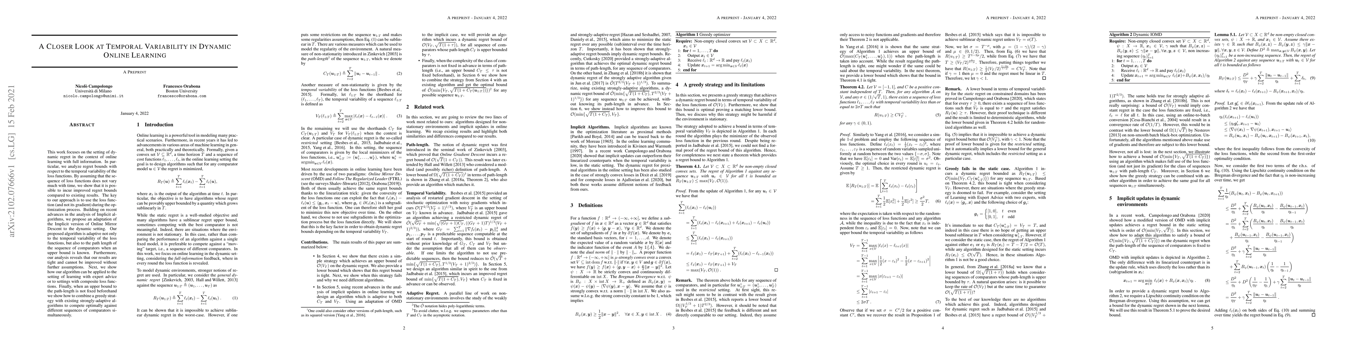 This work focuses on the setting of dynamic regret in the context of online learning with full information. In particular, we analyze regret bounds with respect to the temporal variability of the loss functions. By assuming that the sequence of loss functions does not vary much with time, we show that it is possible to incur improved regret bounds compared to existing results. The key to our approach is to use the loss function (and not its gradient) during the optimization process. Building on recent advances in the analysis of Implicit algorithms, we propose an adaptation of the Implicit version of Online Mirror Descent to the dynamic setting. Our proposed algorithm is adaptive not only to the temporal variability of the loss functions, but also to the path length of the sequence of comparators when an upper bound is known. Furthermore, our analysis reveals that our results are tight and cannot be improved without further assumptions. Next, we show how our algorithm can be applied to the setting of learning with expert advice or to settings with composite loss functions. Finally, when an upper bound to the path-length is not fixed beforehand we show how to combine a greedy strategy with existing strongly-adaptive algorithms to compete optimally against different sequences of comparators simultaneously.