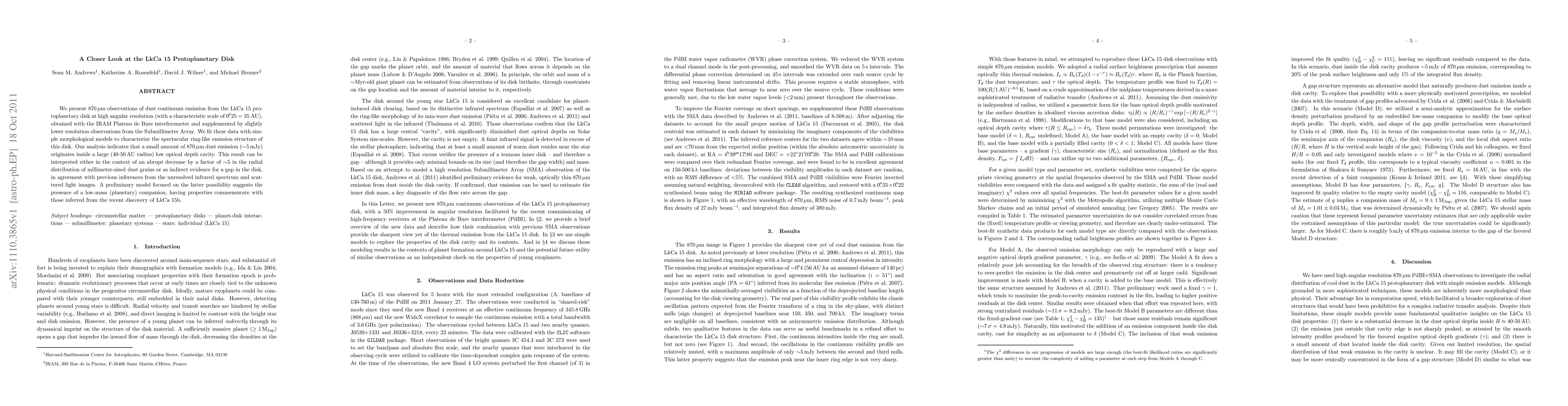 Researchers observed a ring-like structure in the protoplanetary disk of LkCa 15 using high-resolution imaging, finding evidence for a small cavity with little dust emission, which may indicate the presence of a low-mass planetary companion.
