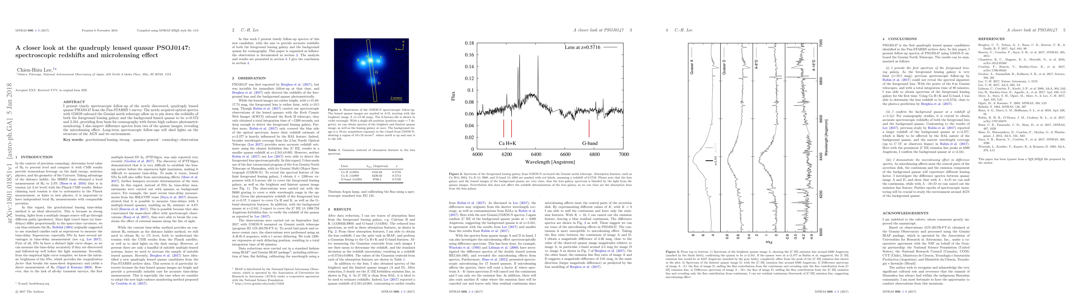 I present timely spectroscopic follow-up of the newly discovered, quadruply lensed quasar PSOJ0147 from the Pan-STARRS 1 survey. The newly acquired optical spectra with GMOS onboard the Gemini north telescope allow us to pin down the redshifts of both the foreground lensing galaxy and the background lensed quasar to be z=0.572 and 2.341, providing firm basis for cosmography with future high cadence photometric monitoring. I also inspect difference spectra from two of the quasar images, revealing the microlensing effect. Long-term spectroscopic follow-ups will shed lights on the structure of the AGN and its environment.