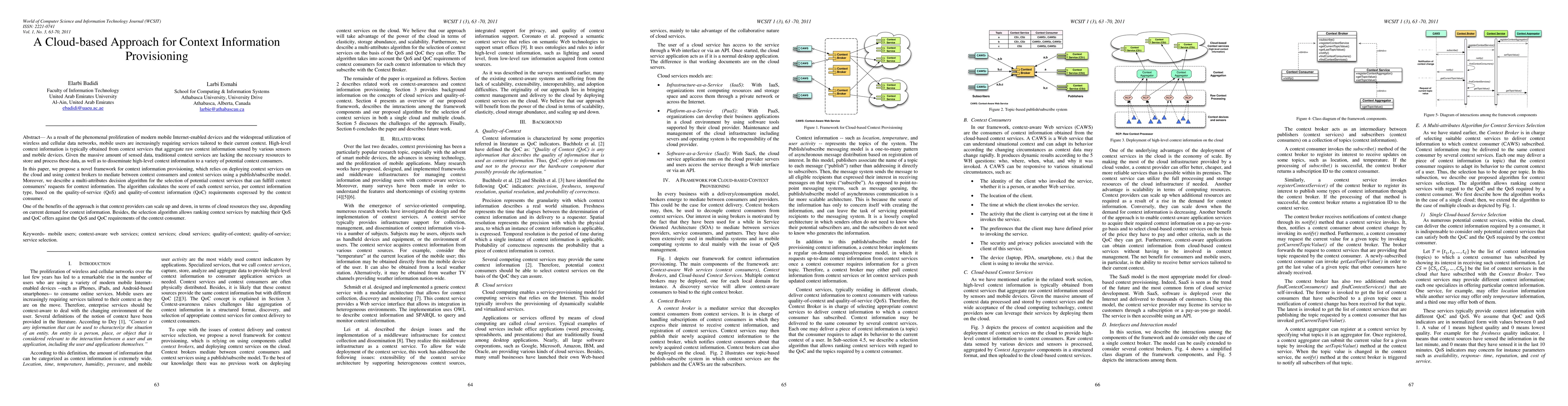 As a result of the phenomenal proliferation of modern mobile Internet-enabled devices and the widespread utilization of wireless and cellular data networks, mobile users are increasingly requiring services tailored to their current context. High-level context information is typically obtained from context services that aggregate raw context information sensed by various sensors and mobile devices. Given the massive amount of sensed data, traditional context services are lacking the necessary resources to store and process these data, as well as to disseminate high-level context information to a variety of potential context consumers. In this paper, we propose a novel framework for context information provisioning, which relies on deploying context services on the cloud and using context brokers to mediate between context consumers and context services using a publish/subscribe model. Moreover, we describe a multi-attributes decision algorithm for the selection of potential context services that can fulfill context consumers' requests for context information. The algorithm calculates the score of each context service, per context information type, based on the quality-of-service (QoS) and quality-of-context information (QoC) requirements expressed by the context consumer. One of the benefits of the approach is that context providers can scale up and down, in terms of cloud resources they use, depending on current demand for context information. Besides, the selection algorithm allows ranking context services by matching their QoS and QoC offers against the QoS and QoC requirements of the context consumer.