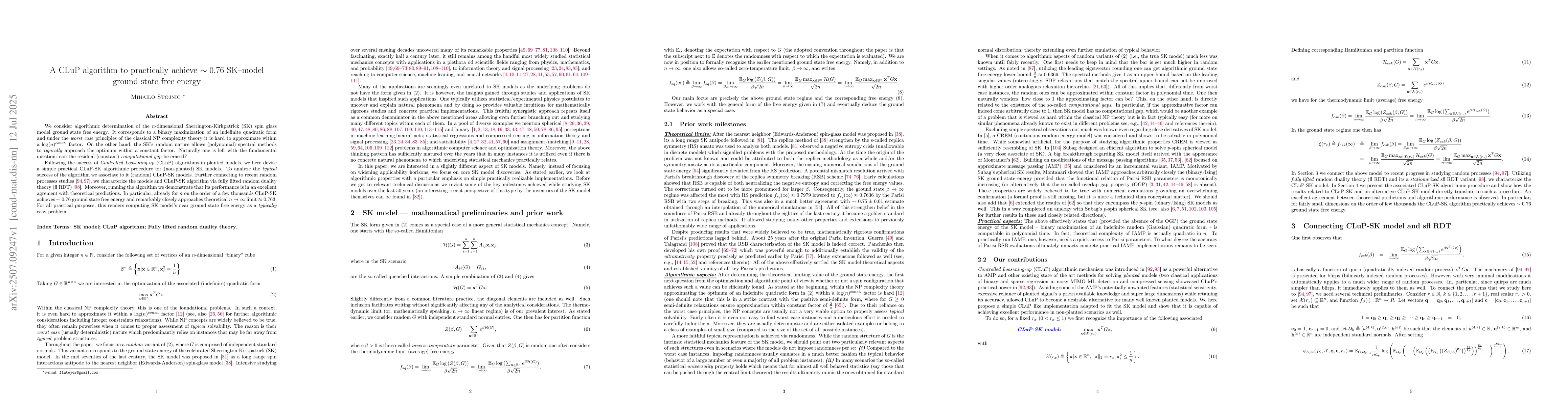 We consider algorithmic determination of the $n$-dimensional Sherrington-Kirkpatrick (SK) spin glass model ground state free energy. It corresponds to a binary maximization of an indefinite quadratic form and under the \emph{worst case} principles of the classical NP complexity theory it is hard to approximate within a $\log(n)^{const.}$ factor. On the other hand, the SK's random nature allows (polynomial) spectral methods to \emph{typically} approach the optimum within a constant factor. Naturally one is left with the fundamental question: can the residual (constant) \emph{computational gap} be erased? Following the success of \emph{Controlled Loosening-up} (CLuP) algorithms in planted models, we here devise a simple practical CLuP-SK algorithmic procedure for (non-planted) SK models. To analyze the \emph{typical} success of the algorithm we associate to it (random) CLuP-SK models. Further connecting to recent random processes studies [94,97], we characterize the models and CLuP-SK algorithm via fully lifted random duality theory (fl RDT) [98]. Moreover, running the algorithm we demonstrate that its performance is in an excellent agrement with theoretical predictions. In particular, already for $n$ on the order of a few thousands CLuP-SK achieves $\sim 0.76$ ground state free energy and remarkably closely approaches theoretical $n\rightarrow\infty$ limit $\approx 0.763$. For all practical purposes, this renders computing SK model's near ground state free energy as a \emph{typically} easy problem.