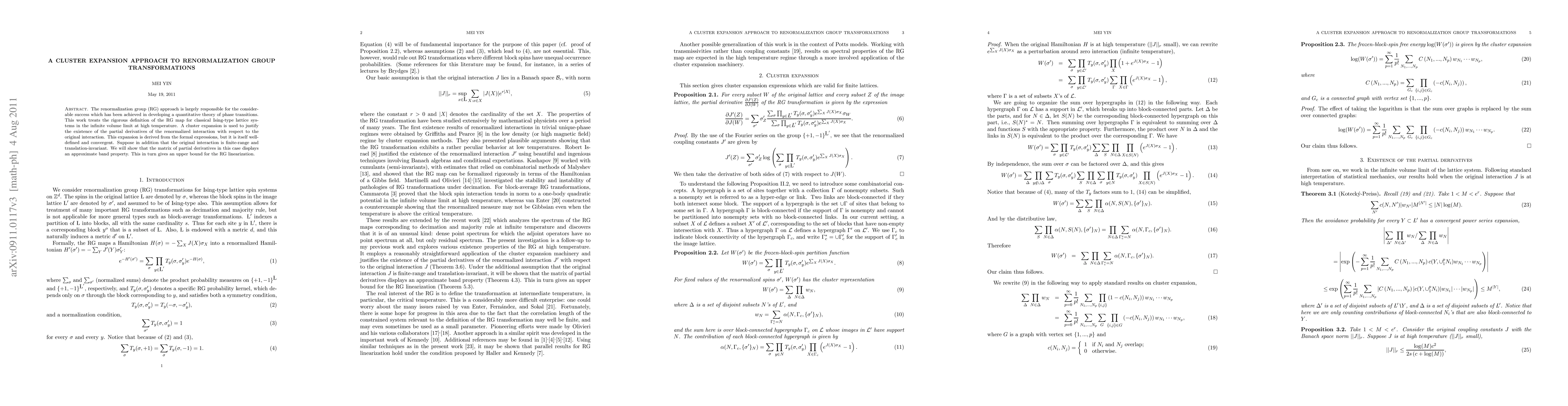 The renormalization group (RG) approach is largely responsible for the considerable success which has been achieved in developing a quantitative theory of phase transitions. This work treats the rigorous definition of the RG map for classical Ising-type lattice systems in the infinite volume limit at high temperature. A cluster expansion is used to justify the existence of the partial derivatives of the renormalized interaction with respect to the original interaction. This expansion is derived from the formal expressions, but it is itself well-defined and convergent. Suppose in addition that the original interaction is finite-range and translation-invariant. We will show that the matrix of partial derivatives in this case displays an approximate band property. This in turn gives an upper bound for the RG linearization.