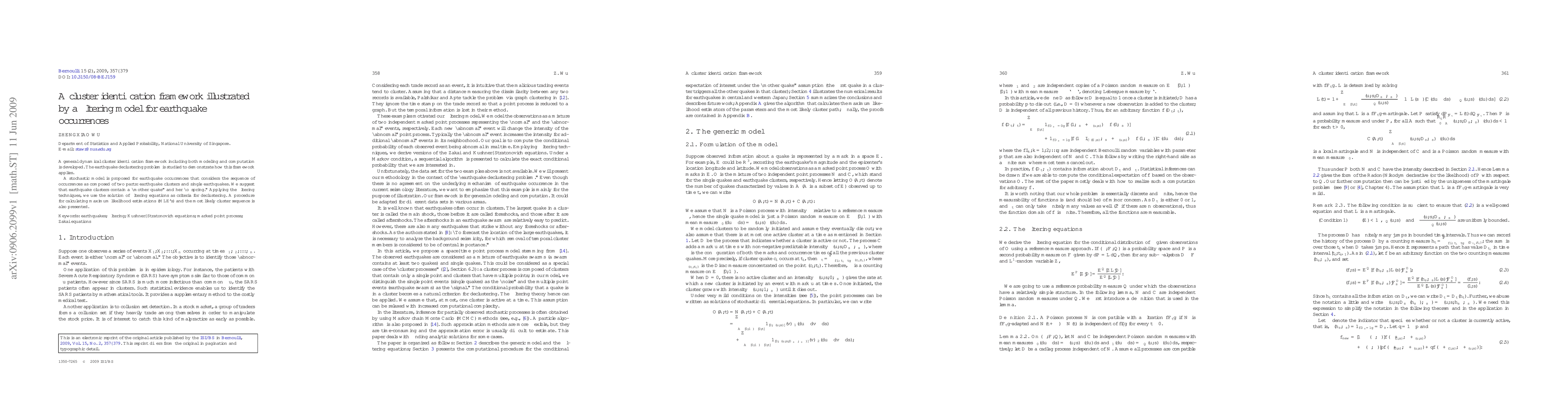 This paper develops a dynamical cluster identification framework for modeling and computation, demonstrating its application to earthquake declustering. It proposes a stochastic model for earthquake occurrences, distinguishing between clusters and single events, and uses filtering techniques to determine the most likely cluster sequence.