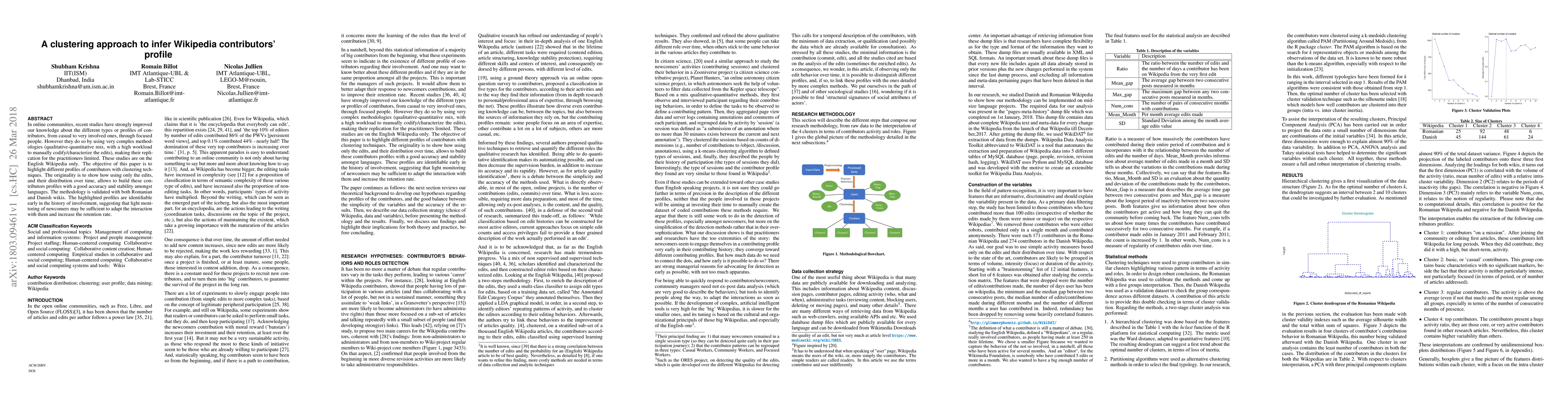 In online communities, recent studies have strongly improved our knowledge about the different types or profiles of contributors, from casual to very involved ones, through focused people. However they do so by using very complex methodologies (qualitative-quantitative mix, with a high workload to manually codify/characterize the edits), making their replication for the practitioners limited. These studies are on the English Wikipedia only. The objective of this paper is to highlight different profiles of contributors with clustering techniques. The originality is to show how using only the edits, and their distribution over time, allows to build these contributors profiles with a good accuracy and stability amongst languages. The methodology is validated with both Romanian and Danish wikis. The highlighted profiles are identifiable early in the history of involvement, suggesting that light monitoring of newcomers may be sufficient to adapt the interaction with them and increase the retention rate.