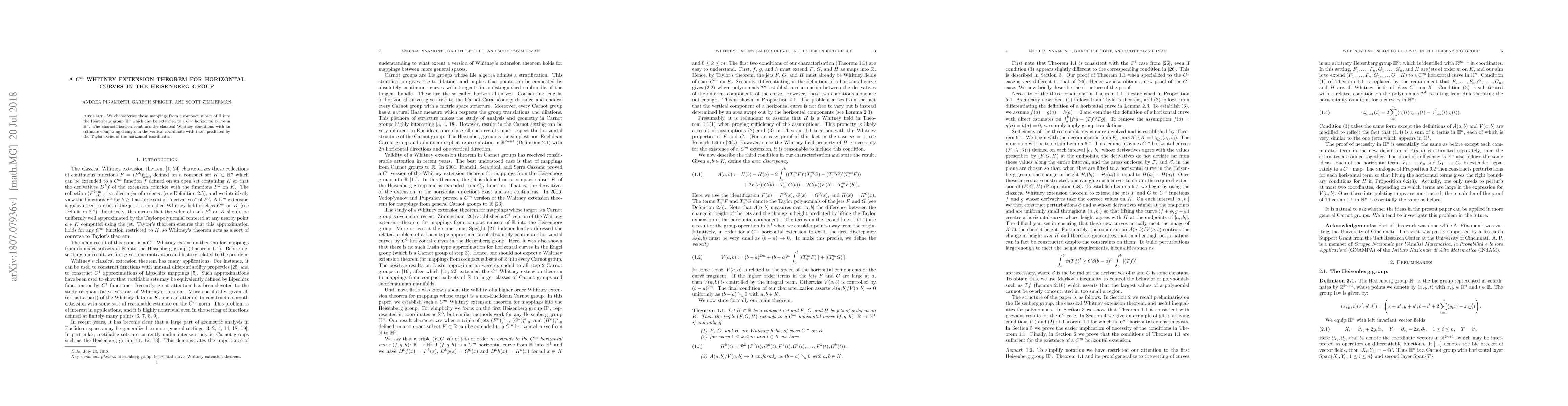 The paper introduces a refined set of conditions combining Whitney's extension conditions with Taylor series estimates, providing a comprehensive framework for \(C^m\) horizontal curve extensions in the Heisenberg group.
