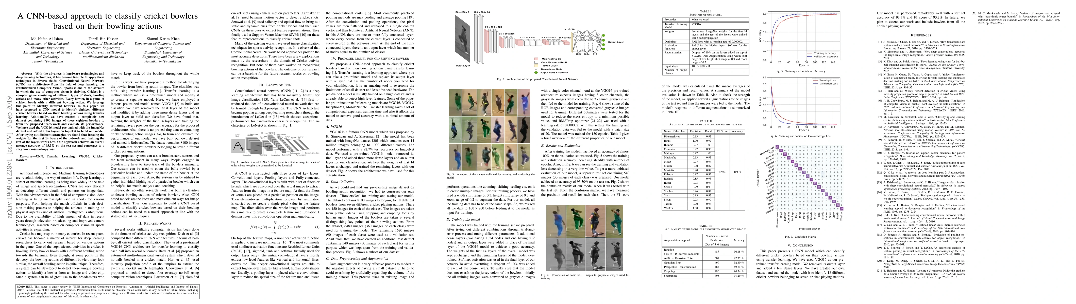 This paper proposes a CNN-based approach using transfer learning to classify eighteen cricket bowlers based on their unique bowling actions. The study employs a pre-trained VGG16 model, fine-tuning it with a newly created dataset of 8100 images, achieving an average accuracy of 93.3% on the test set.