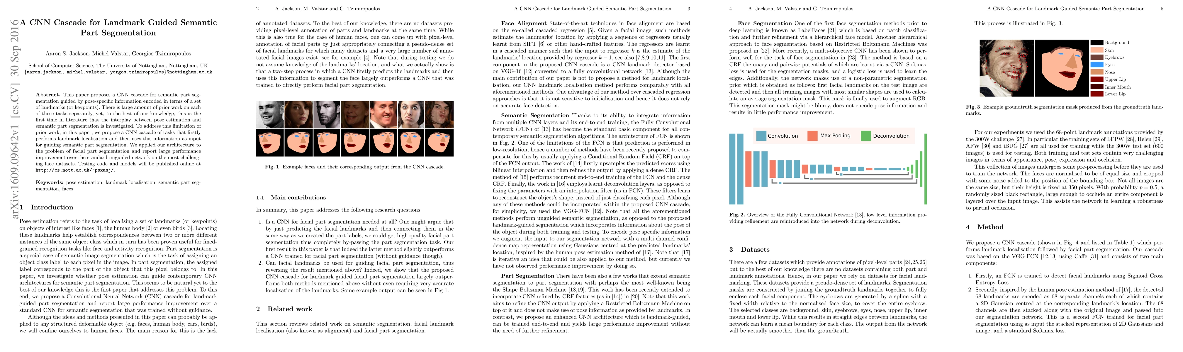 This paper proposes a CNN cascade for semantic part segmentation guided by pose-specific information encoded in terms of a set of landmarks (or keypoints). There is large amount of prior work on each of these tasks separately, yet, to the best of our knowledge, this is the first time in literature that the interplay between pose estimation and semantic part segmentation is investigated. To address this limitation of prior work, in this paper, we propose a CNN cascade of tasks that firstly performs landmark localisation and then uses this information as input for guiding semantic part segmentation. We applied our architecture to the problem of facial part segmentation and report large performance improvement over the standard unguided network on the most challenging face datasets. Testing code and models will be published online at http://cs.nott.ac.uk/~psxasj/.