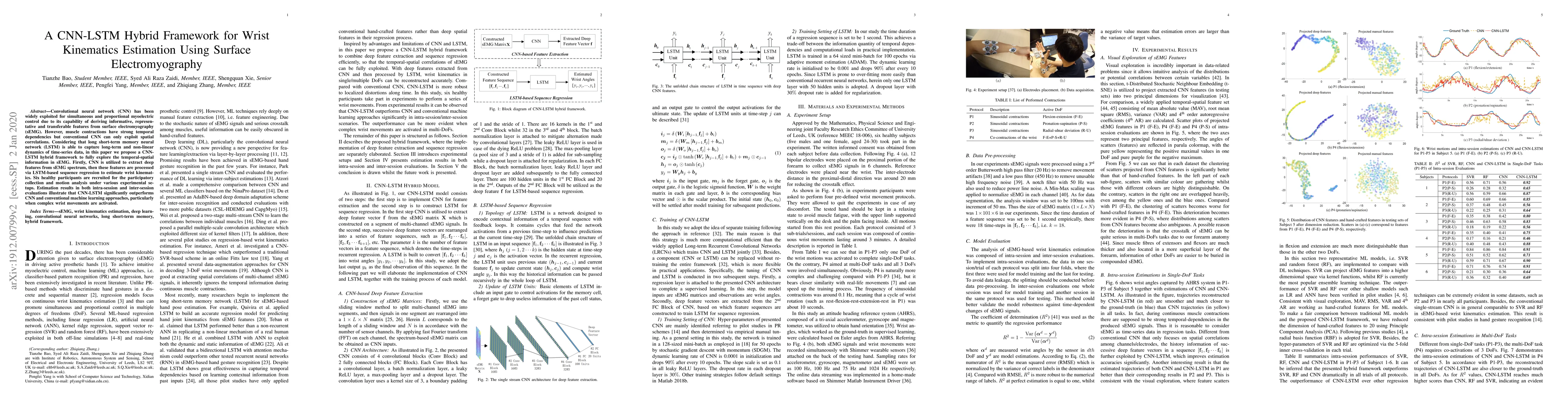 This research proposes a CNN-LSTM hybrid framework to enhance wrist kinematics estimation using surface electromyography (sEMG). The study demonstrates that combining CNN for spatial feature extraction with LSTM for temporal sequence processing significantly improves the accuracy of wrist movement estimation compared to standalone CNN and traditional machine learning methods.