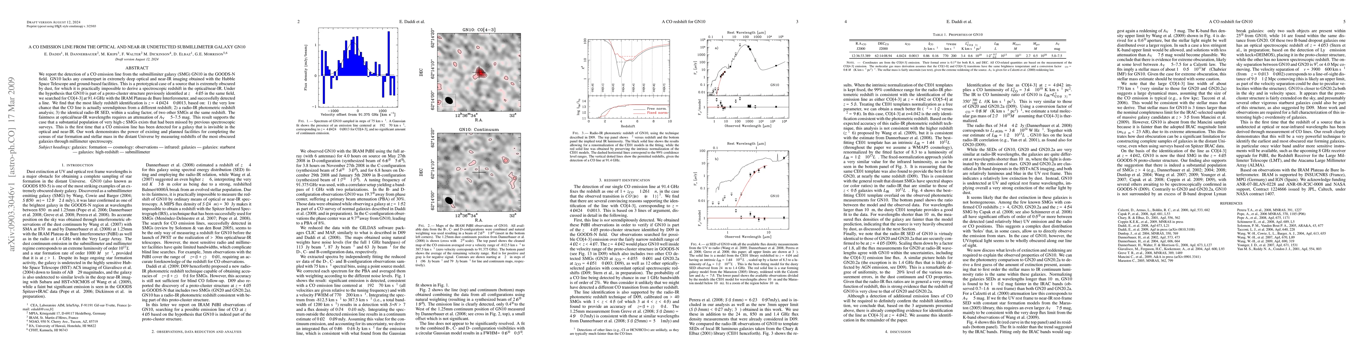 We report the detection of a CO emission line from the submillimiter galaxy (SMG) GN10 in the GOODS-N field. GN10 lacks any counterpart in extremely deep optical and near-IR imaging obtained with the Hubble Space Telescope and ground-based facilities. This is a prototypical case of a source that is extremely obscured by dust, for which it is practically impossible to derive a spectroscopic redshift in the optical/near-IR. Under the hypothesis that GN10 is part of a proto-cluster structure previously identified at z~4.05 in the same field, we searched for CO[4-3] at 91.4 GHz with the IRAM Plateau de Bure Interferometer, and successfully detected a line. We find that the most likely redshift identification is z=4.0424+-0.0013, based on: 1) the very low chance that the CO line is actually serendipitous from a different redshift; 2) a radio-IR photometric redshift analysis; 3) the identical radio-IR SED, within a scaling factor, of two other SMGs at the same redshift. The faintness at optical/near-IR wavelengths requires an attenuation of A_V~5-7.5 mag. This result supports the case that a substantial population of very high-z SMGs exists that had been missed by previous spectroscopic surveys. This is the first time that a CO emission line has been detected for a galaxy that is invisible in the optical and near-IR. Our work demonstrates the power of existing and planned facilities for completing the census of star formation and stellar mass in the distant Universe by measuring redshifts of the most obscured galaxies through millimeter spectroscopy.