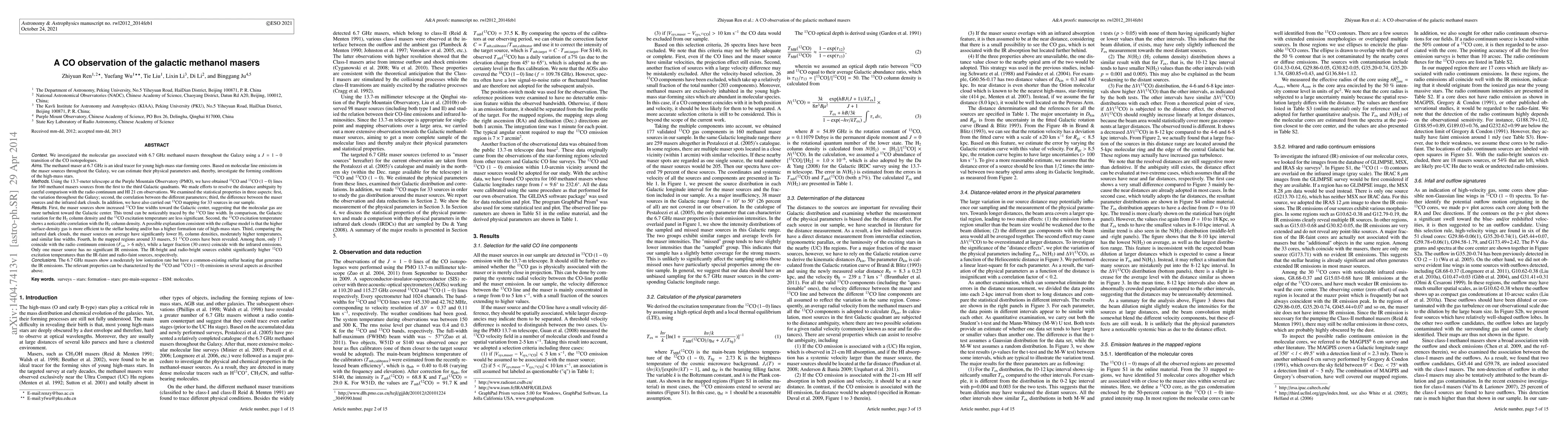 This study investigates the molecular gas associated with 6.7 GHz methanol masers using CO isotopologues, revealing increased turbulence toward the Galactic center and a correlation between CO excitation temperature and H_2 column density, suggesting higher-mass star formation efficiency.