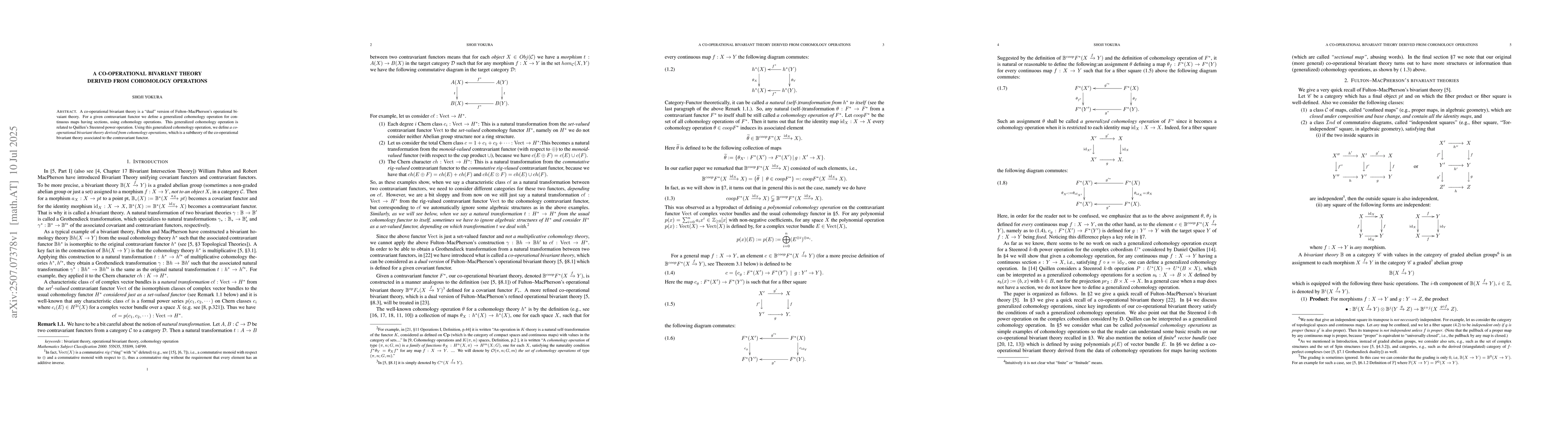 A co-operational bivariant theory is a ``dual" version of Fulton--MacPherson's operational bivaiant theory. For a given contravariant functor we define a generalized cohomology operation for continuous maps having sections, using cohomology operations. This generalized cohomology operation is related to Quillen's Steenrod power operation. Using this generalized cohomology operation, we define \emph{a co-operational bivariant theory derived from cohomology operations}, which is a subtheory of the co-operational bivariant theory associated to the contravariant functor.