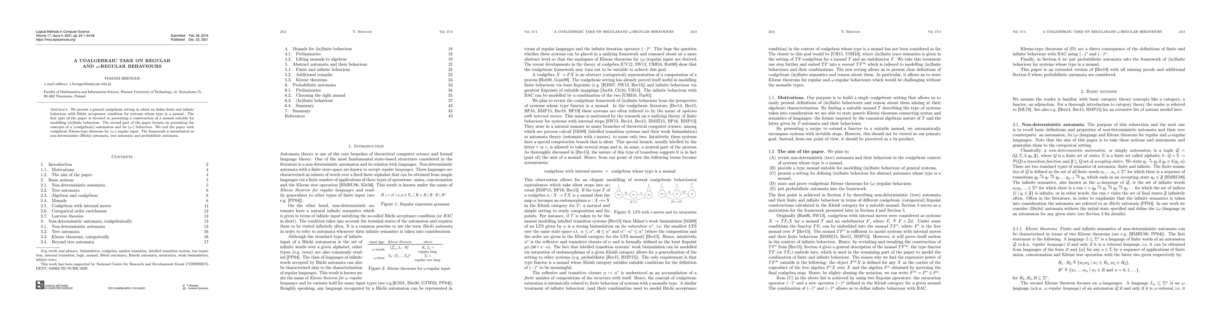 We present a general coalgebraic setting in which we define finite and infinite behaviour with B\"uchi acceptance condition for systems whose type is a monad. The first part of the paper is devoted to presenting a construction of a monad suitable for modelling (in)finite behaviour. The second part of the paper focuses on presenting the concepts of a (coalgebraic) automaton and its ($\omega$-) behaviour. We end the paper with coalgebraic Kleene-type theorems for ($\omega$-) regular input. The framework is instantiated on non-deterministic (B\"uchi) automata, tree automata and probabilistic automata.